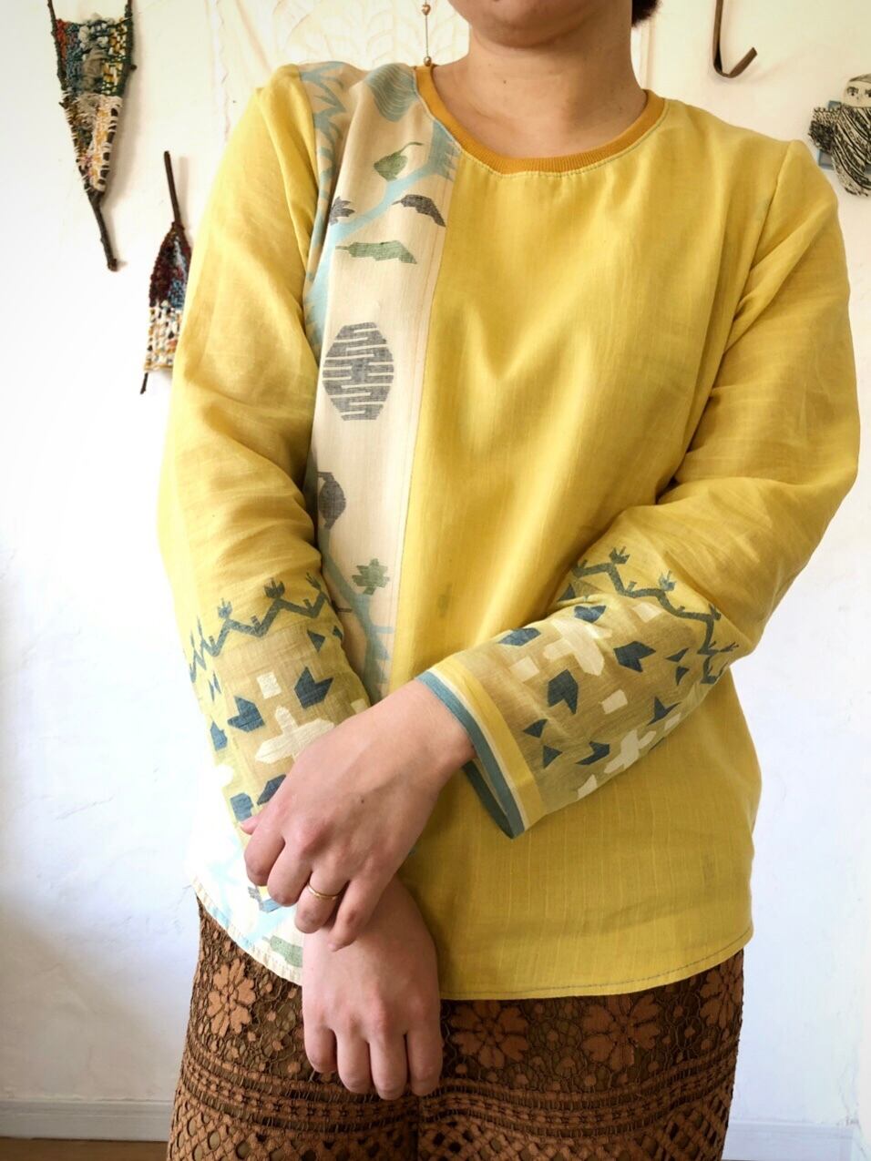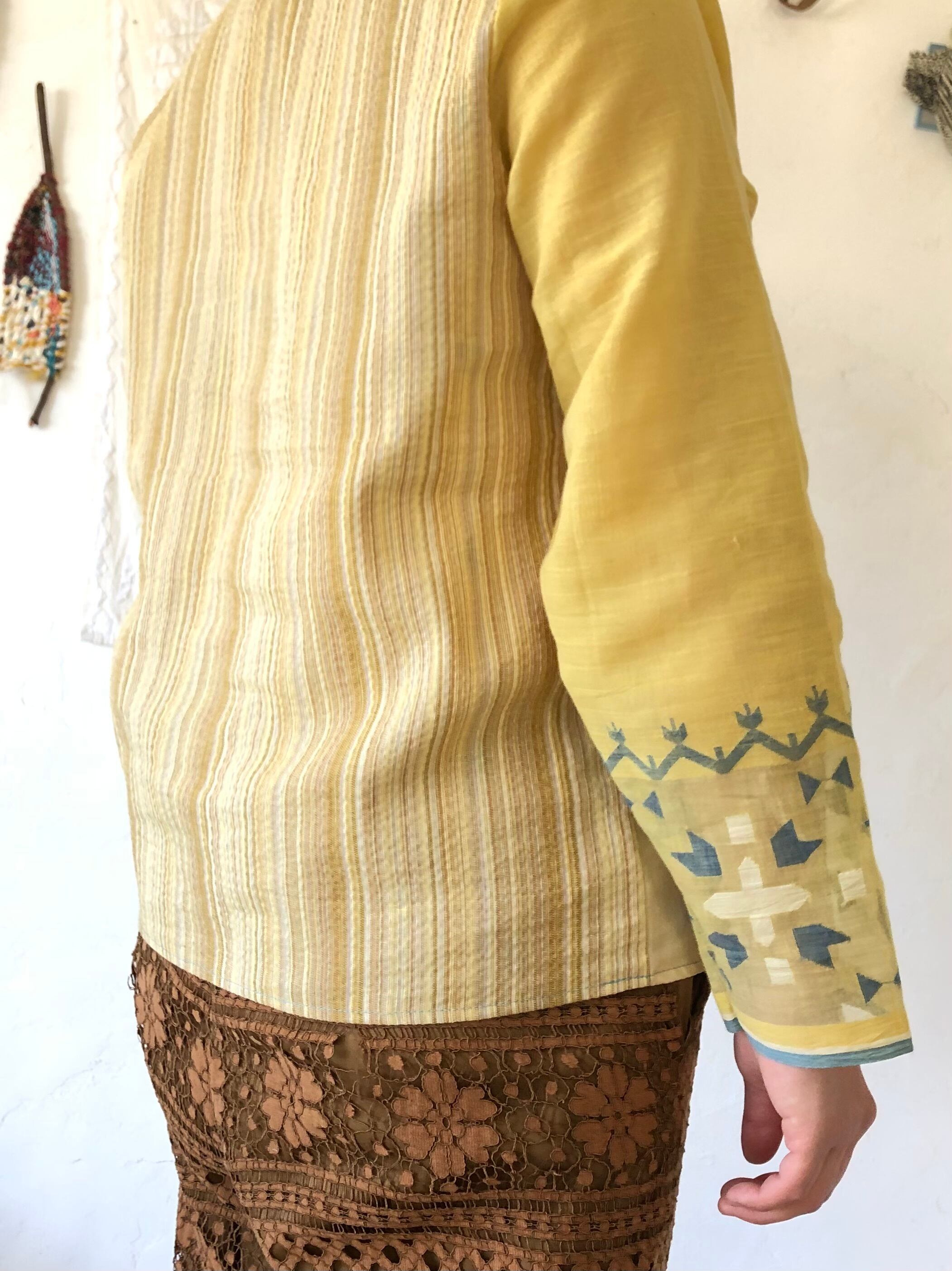 こちらの《イエロー》は身頃の大胆なジャムダニ織の模様が目を惹き、草花をデザインした模様が春の訪れを感じさせます。