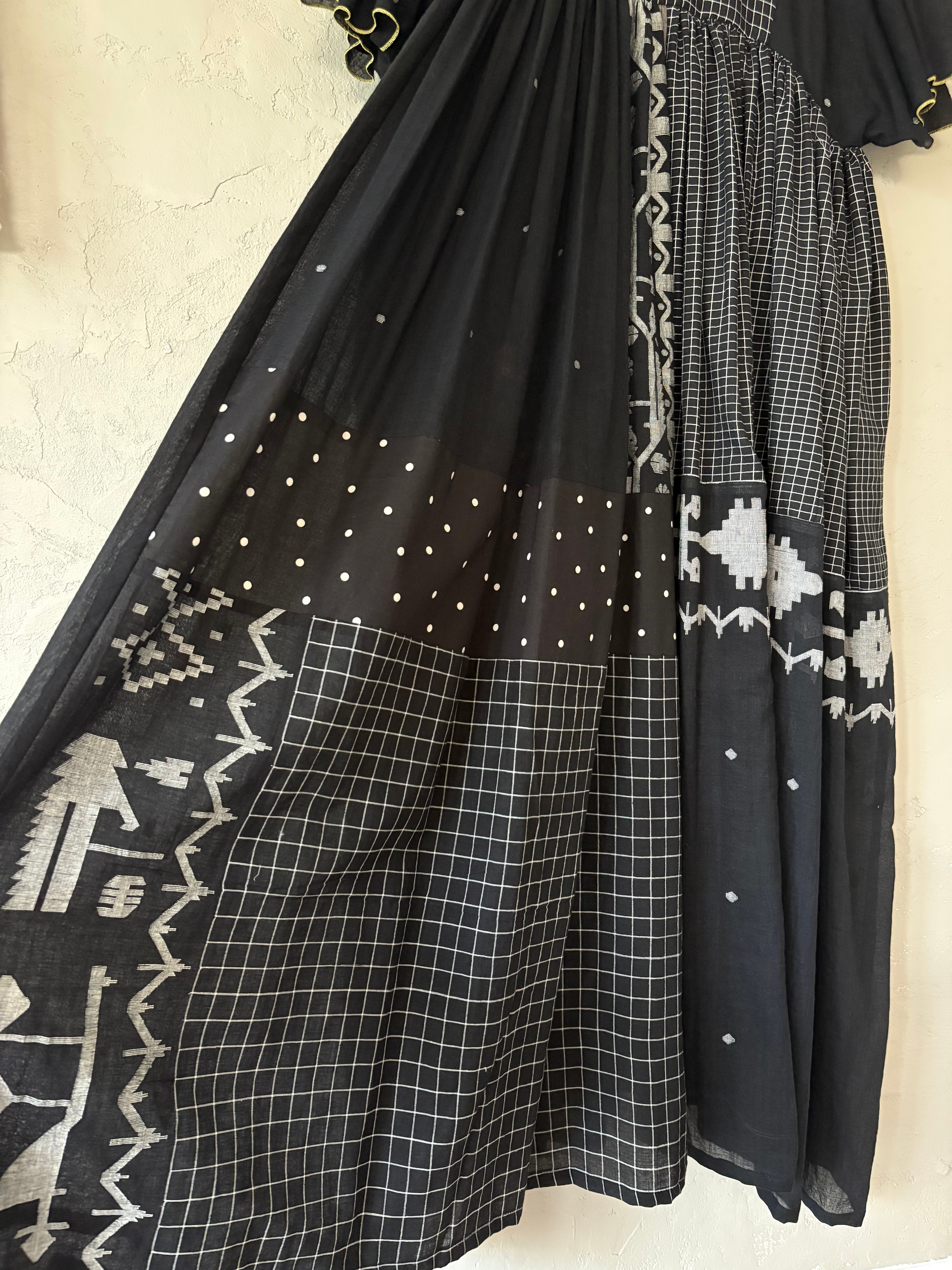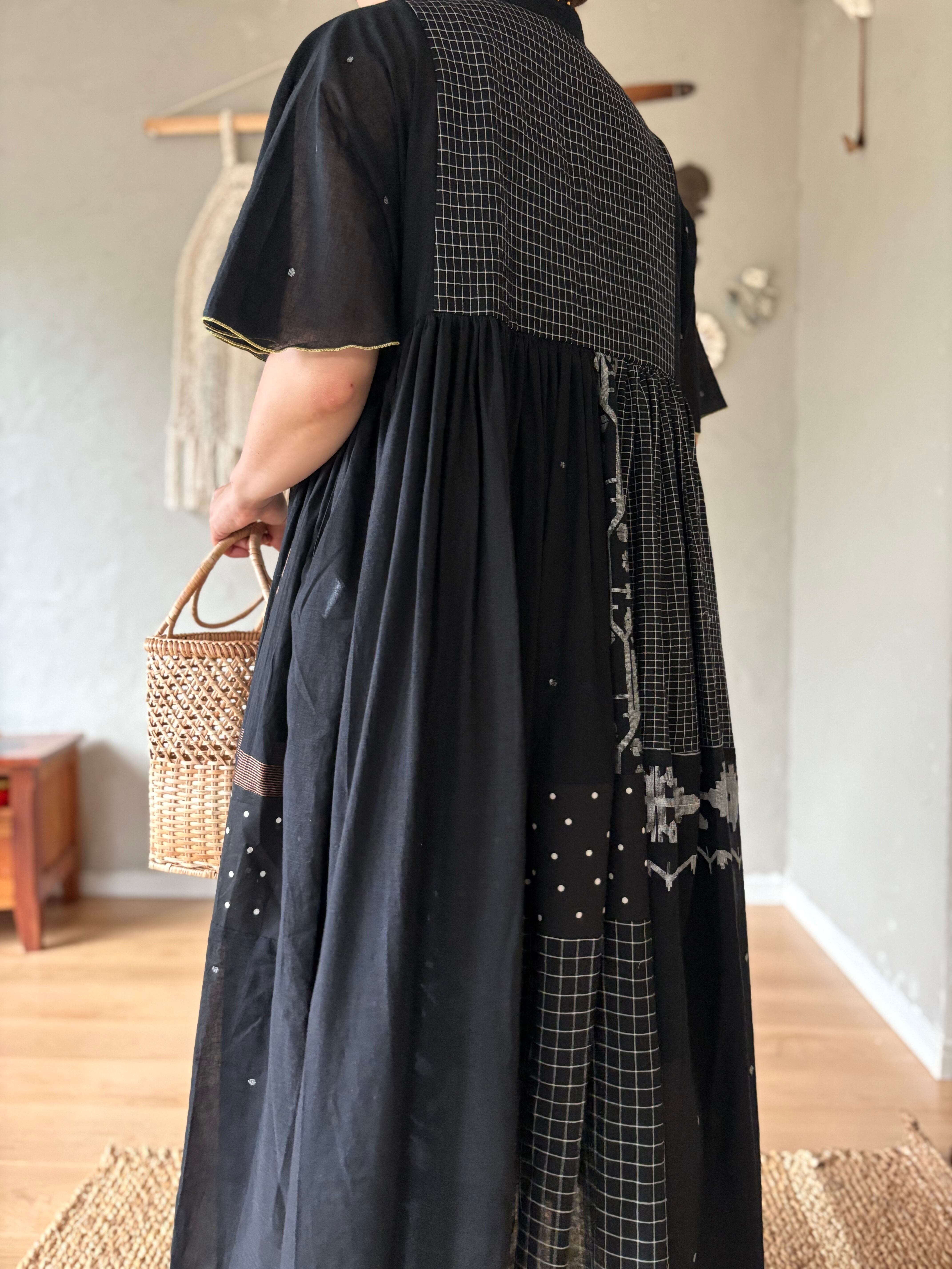ジャムダニの賑やかな模様がひらひら軽やかに揺れるスカートの中にそっと隠れています。