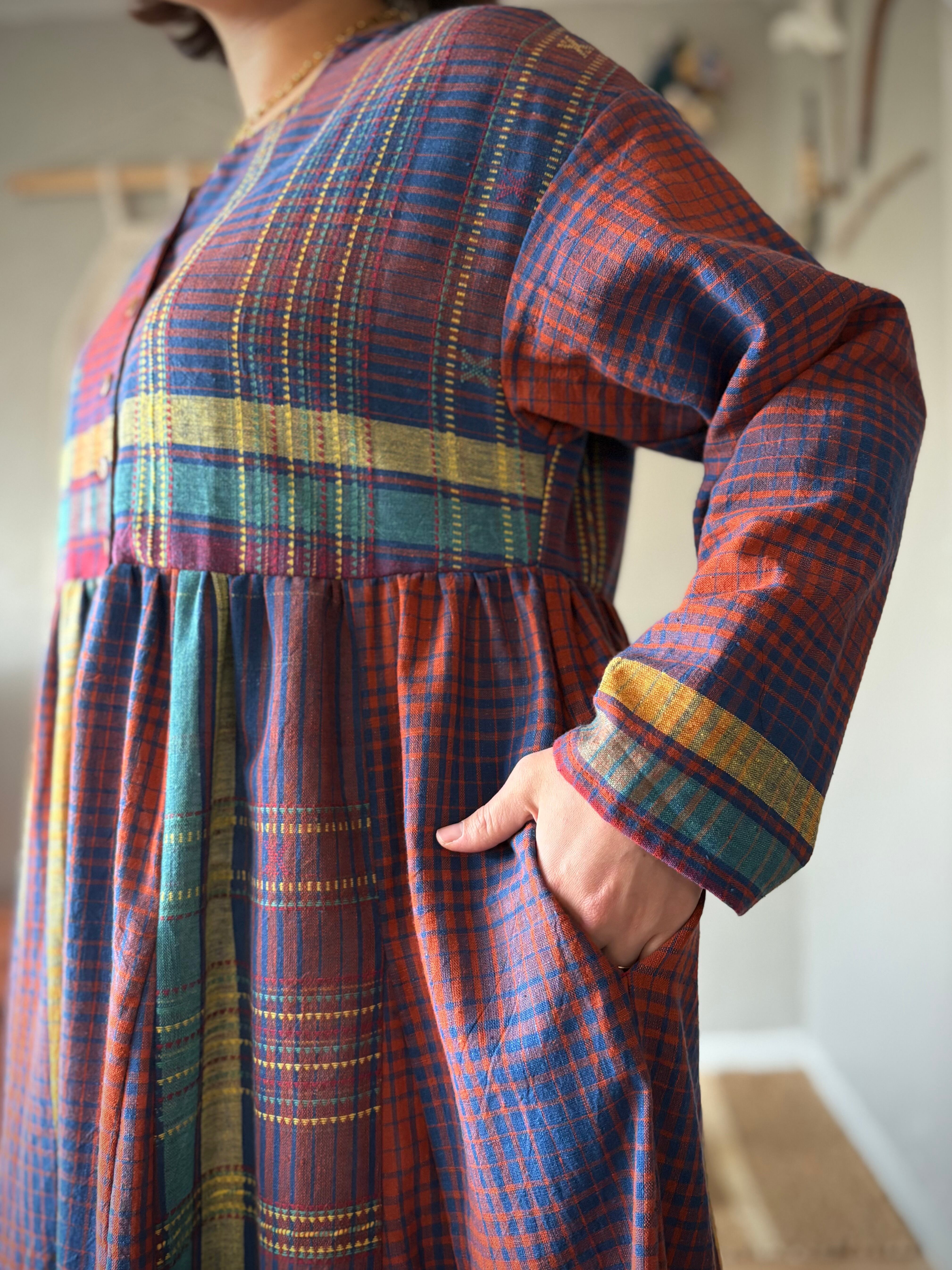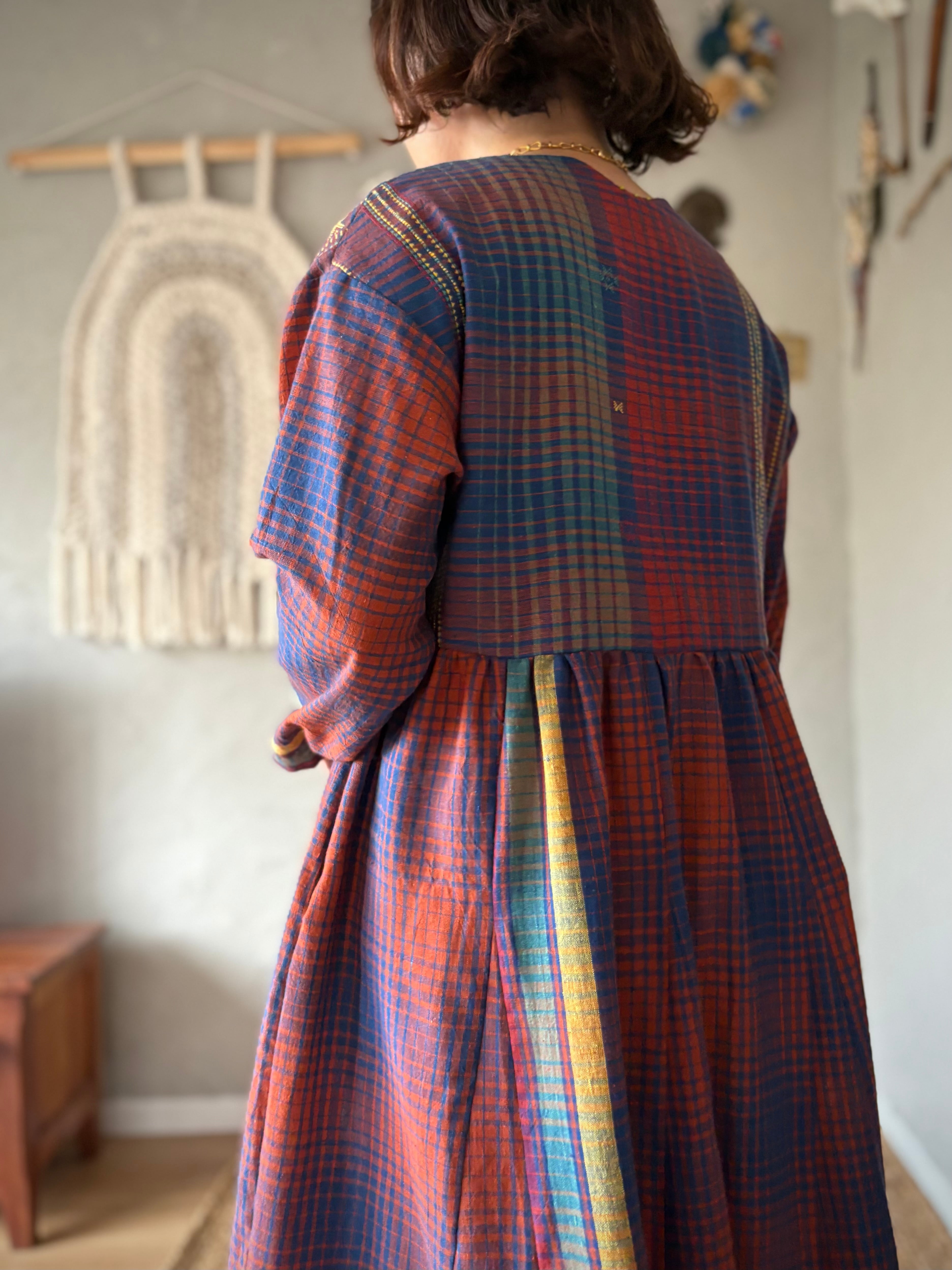 1枚のサリーから一着のワンピースを仕立てました。