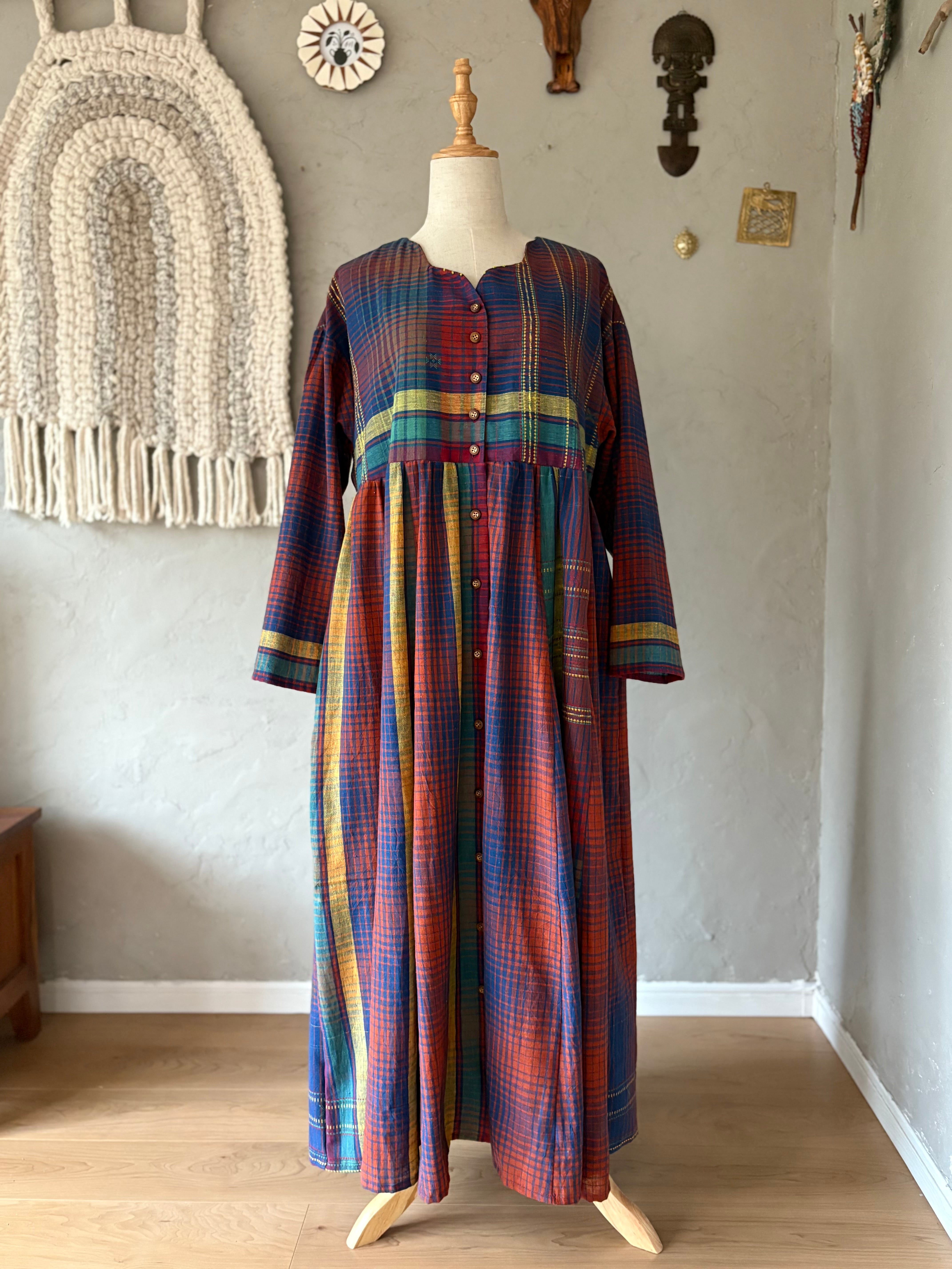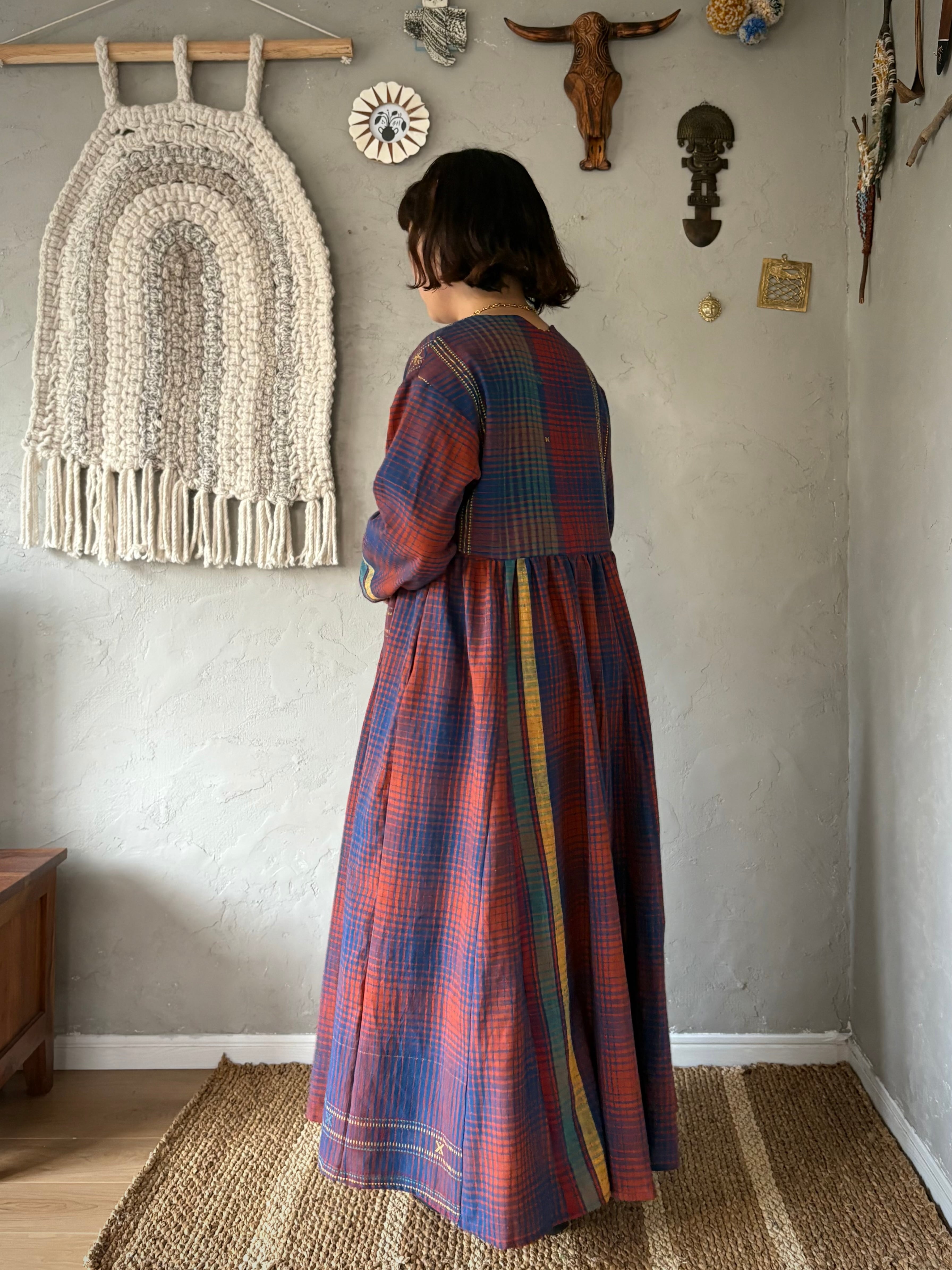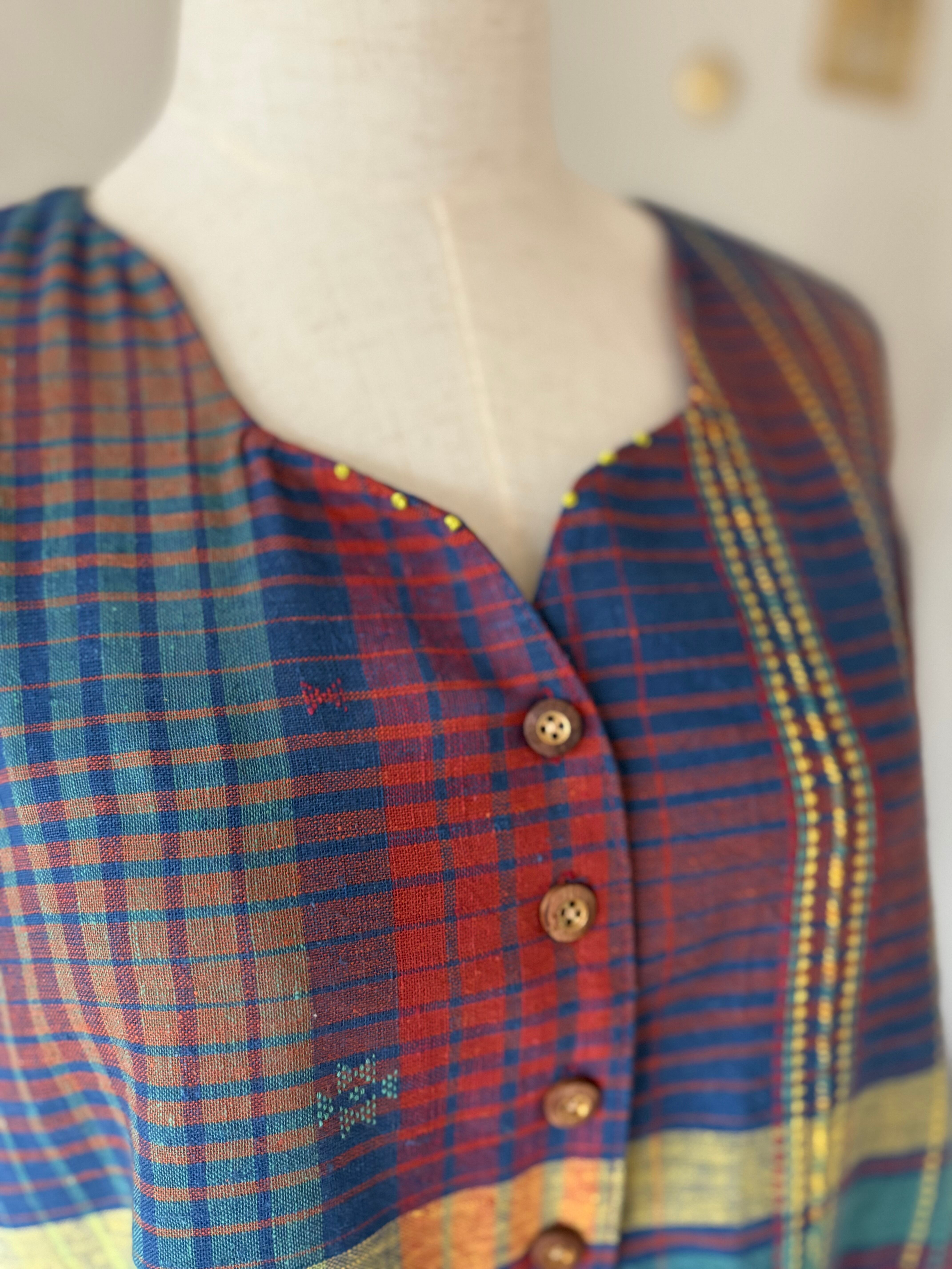 インドの手紡ぎ手織りカラコットンのブジョディサリーを使用。