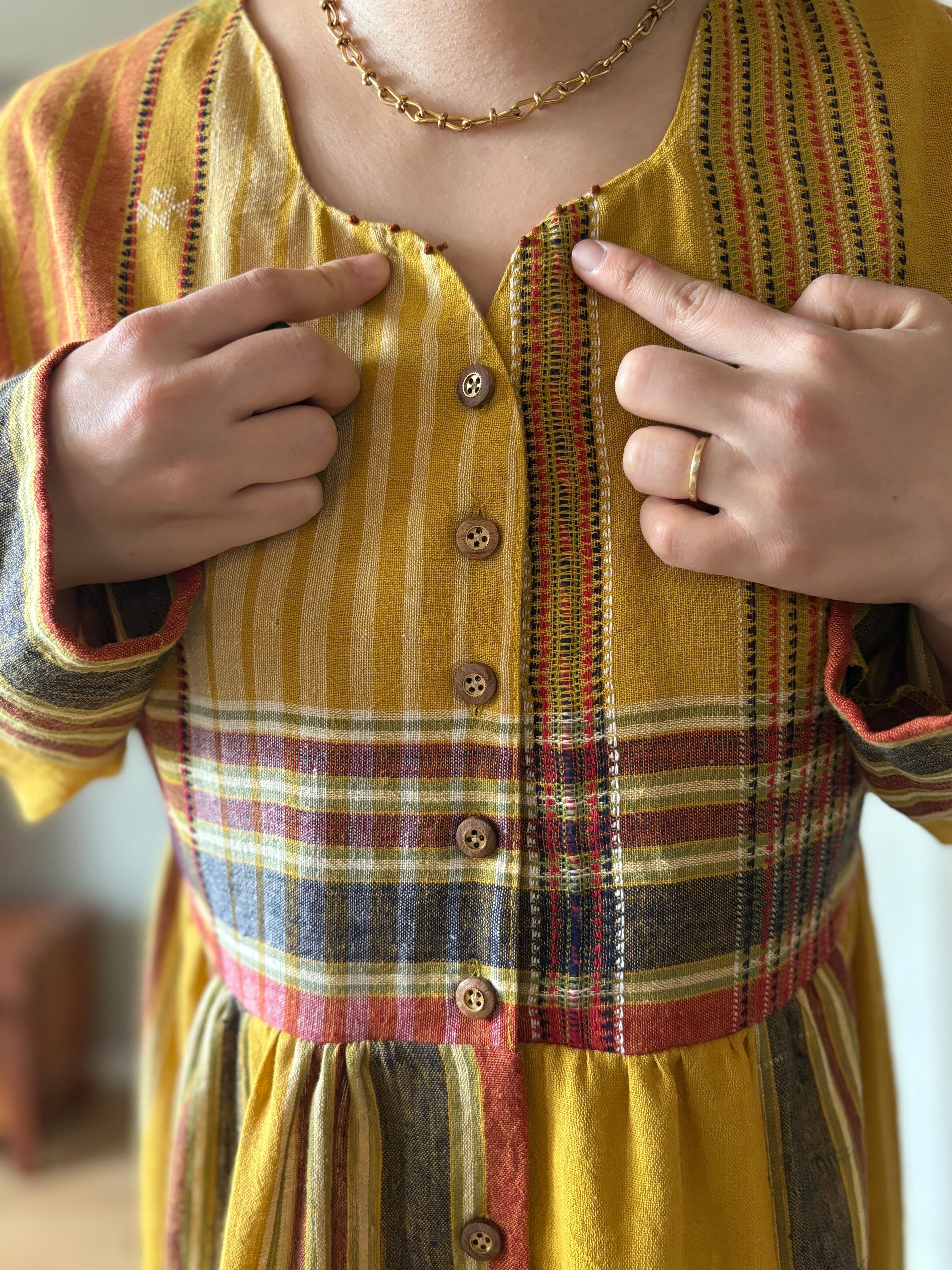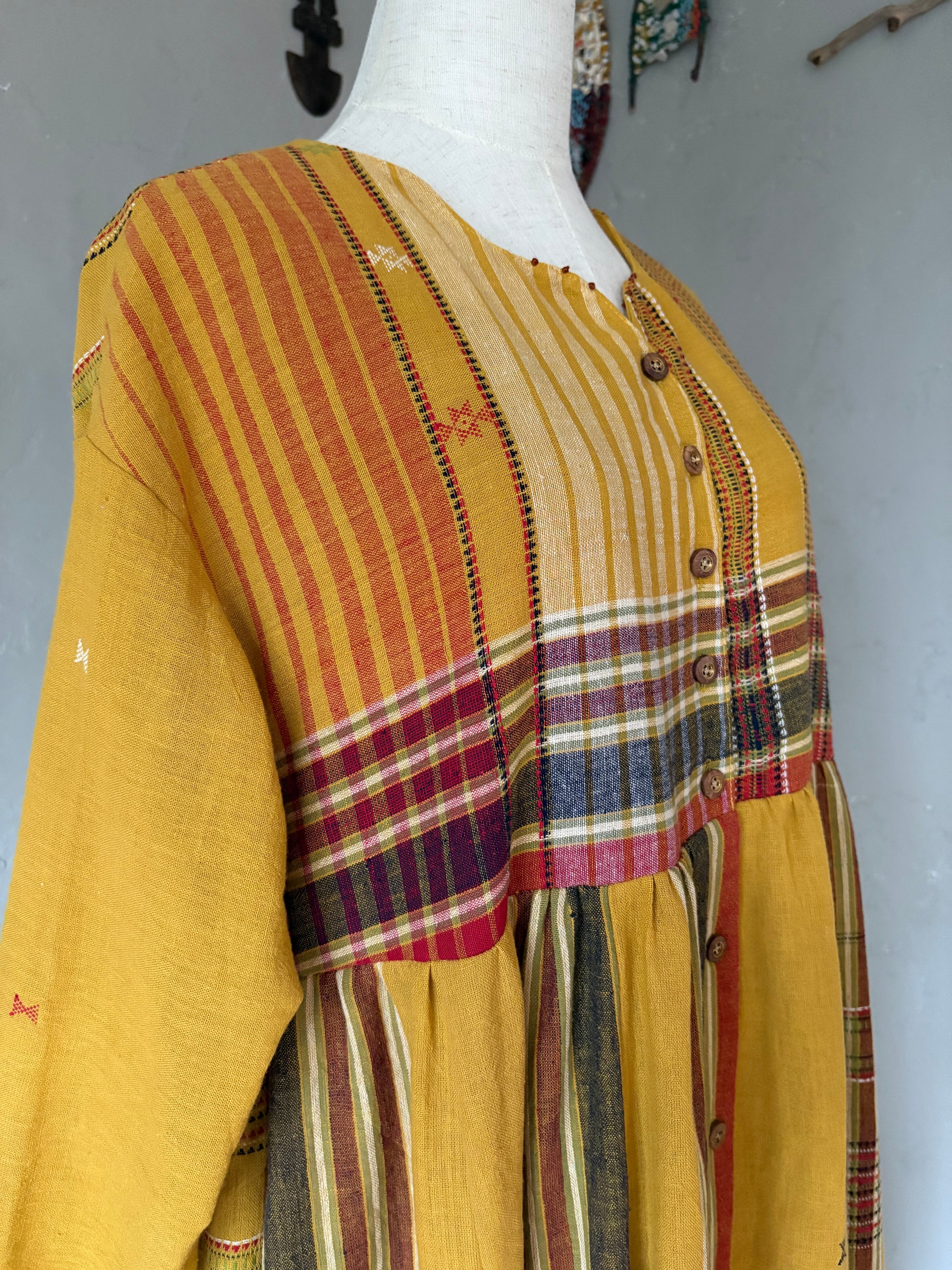 1枚のサリーから一着のワンピースを仕立てました。