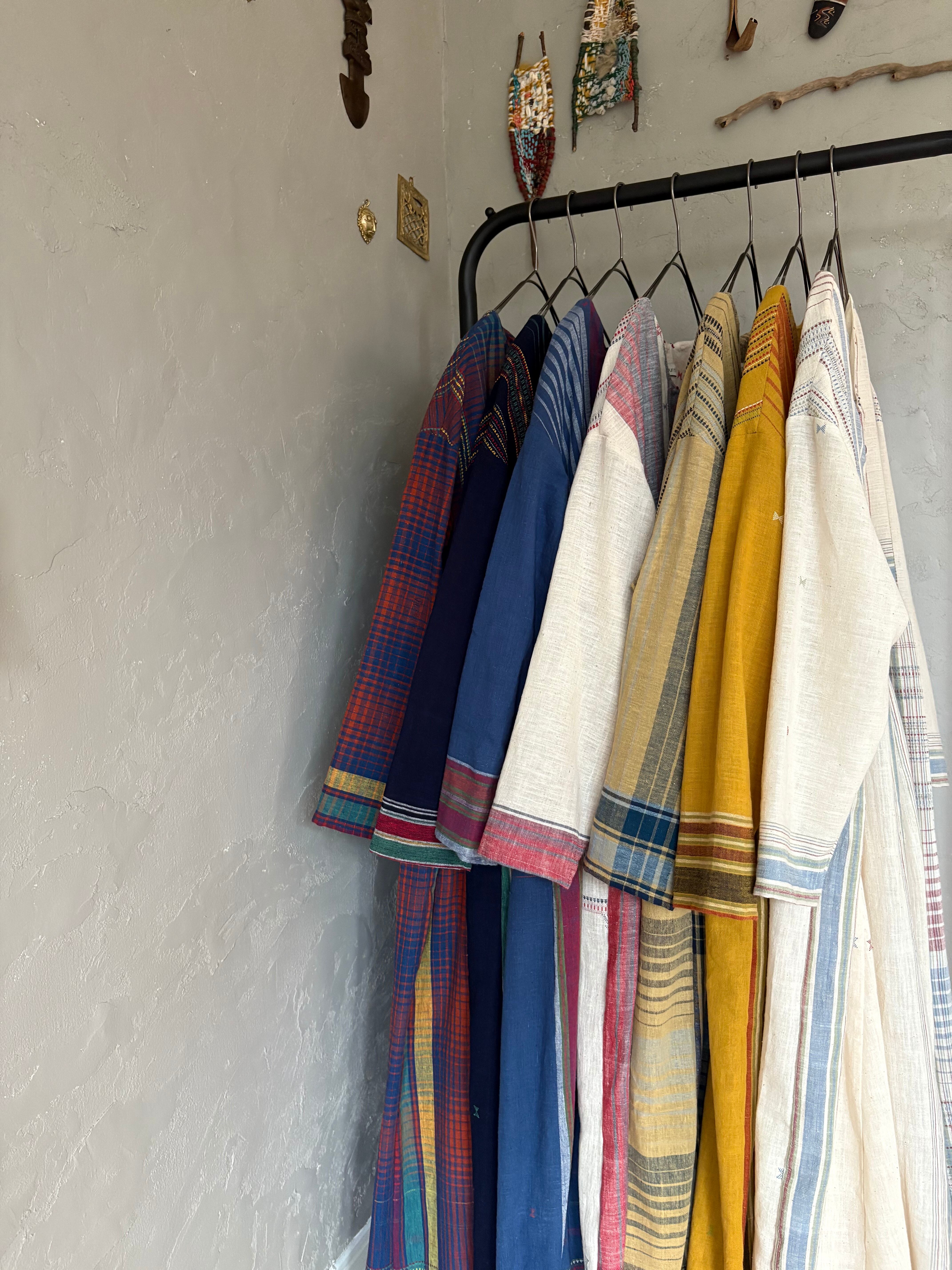 インドの手紡ぎ手織りカラコットンのブジョディサリーを使用。