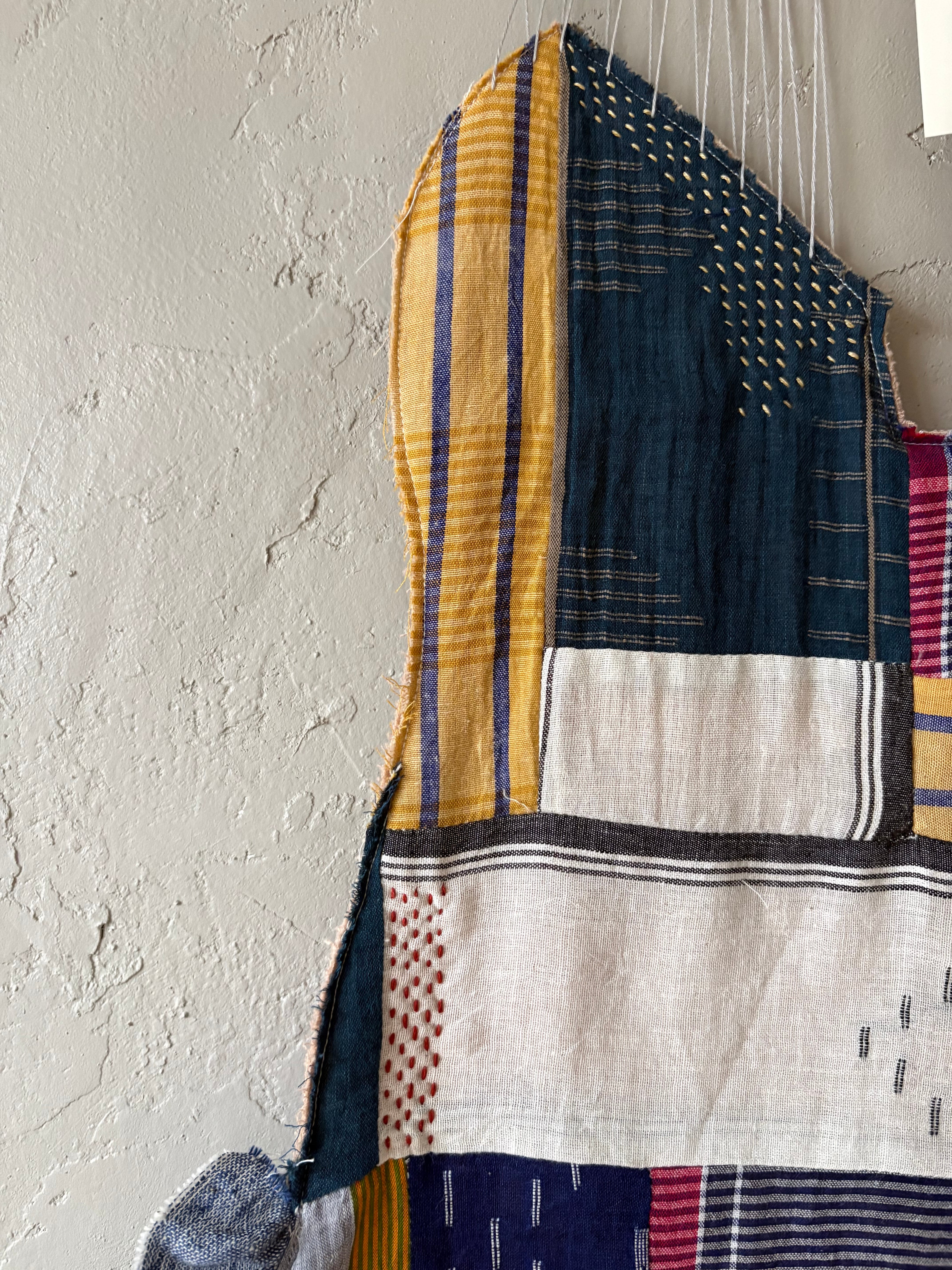 洋服づくりの過程で生まれた、小さなハギレたちを一つずつ選び、縫って、重ねて、また縫って。