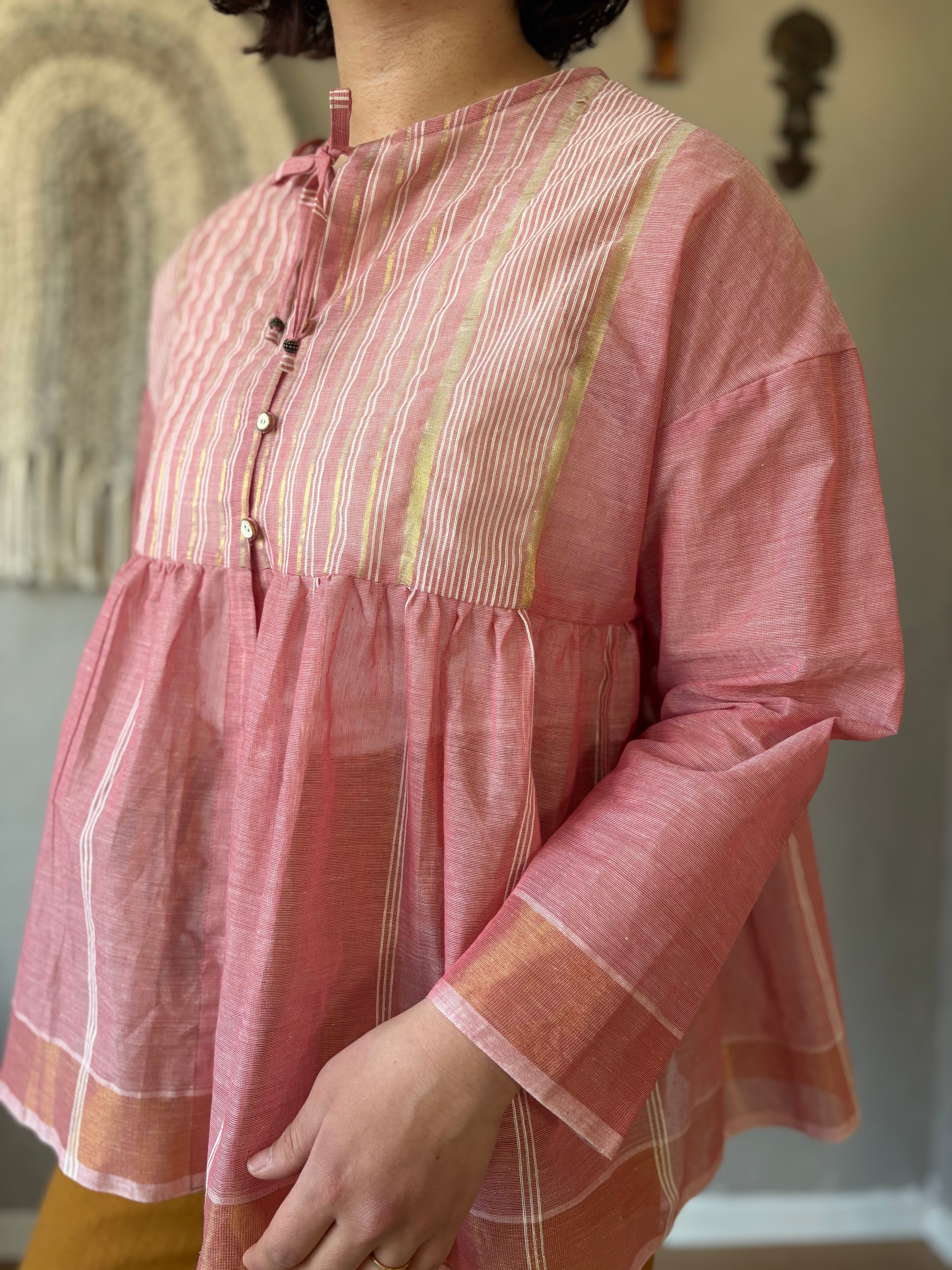 手織りのコットンサリーを使用しています。