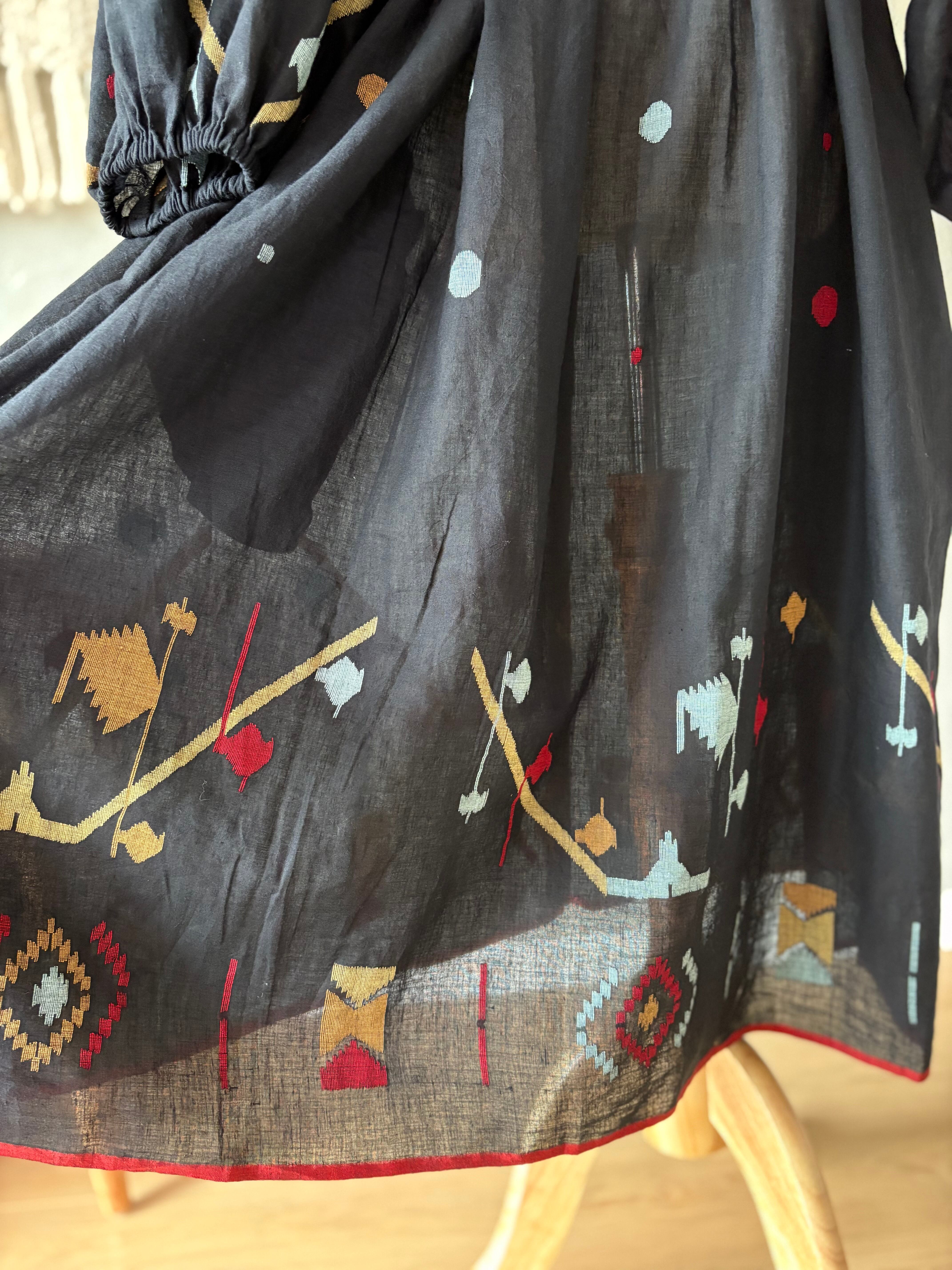 ・インド手紡ぎ手織りのコットンジャムダニ生地