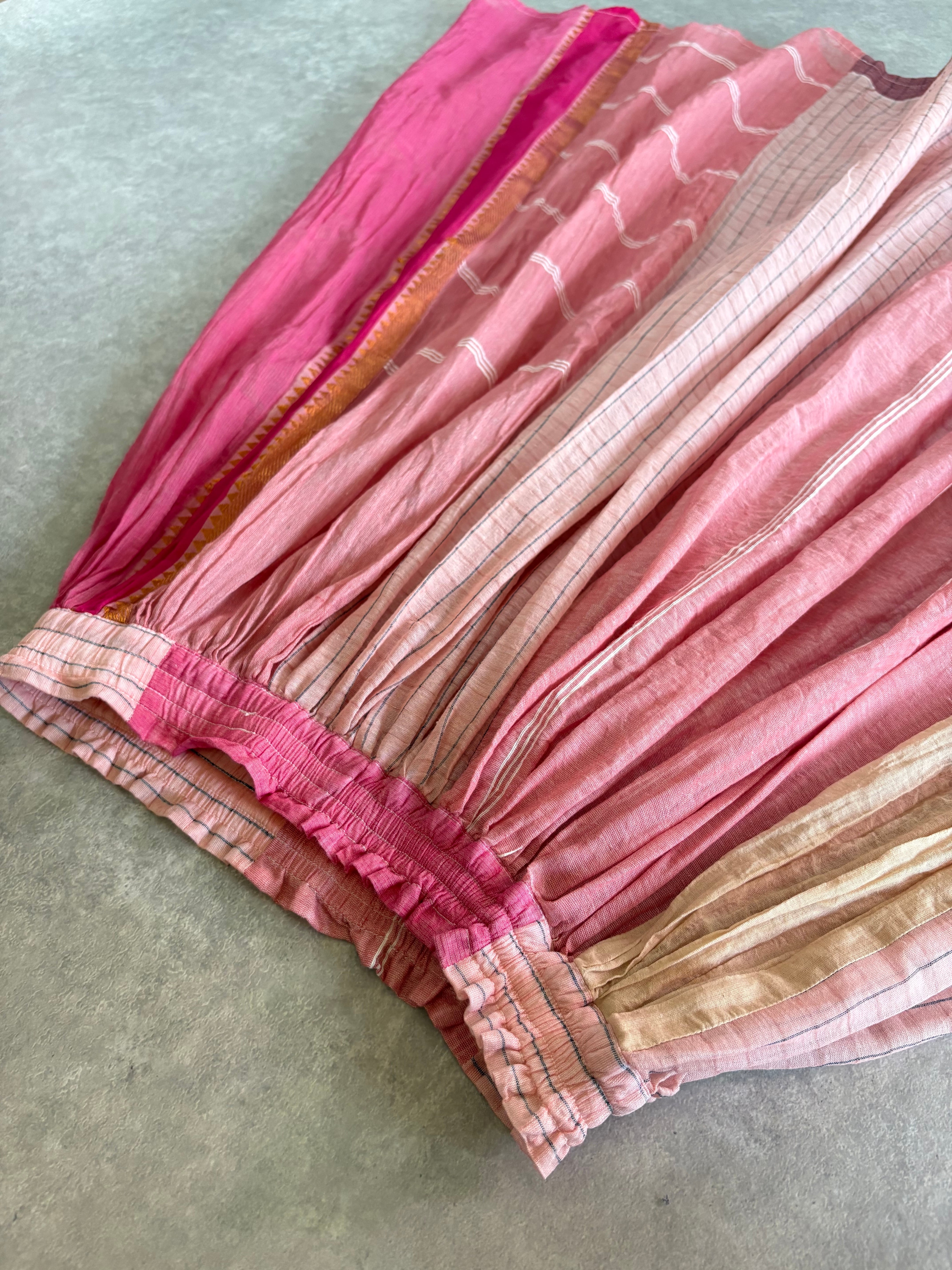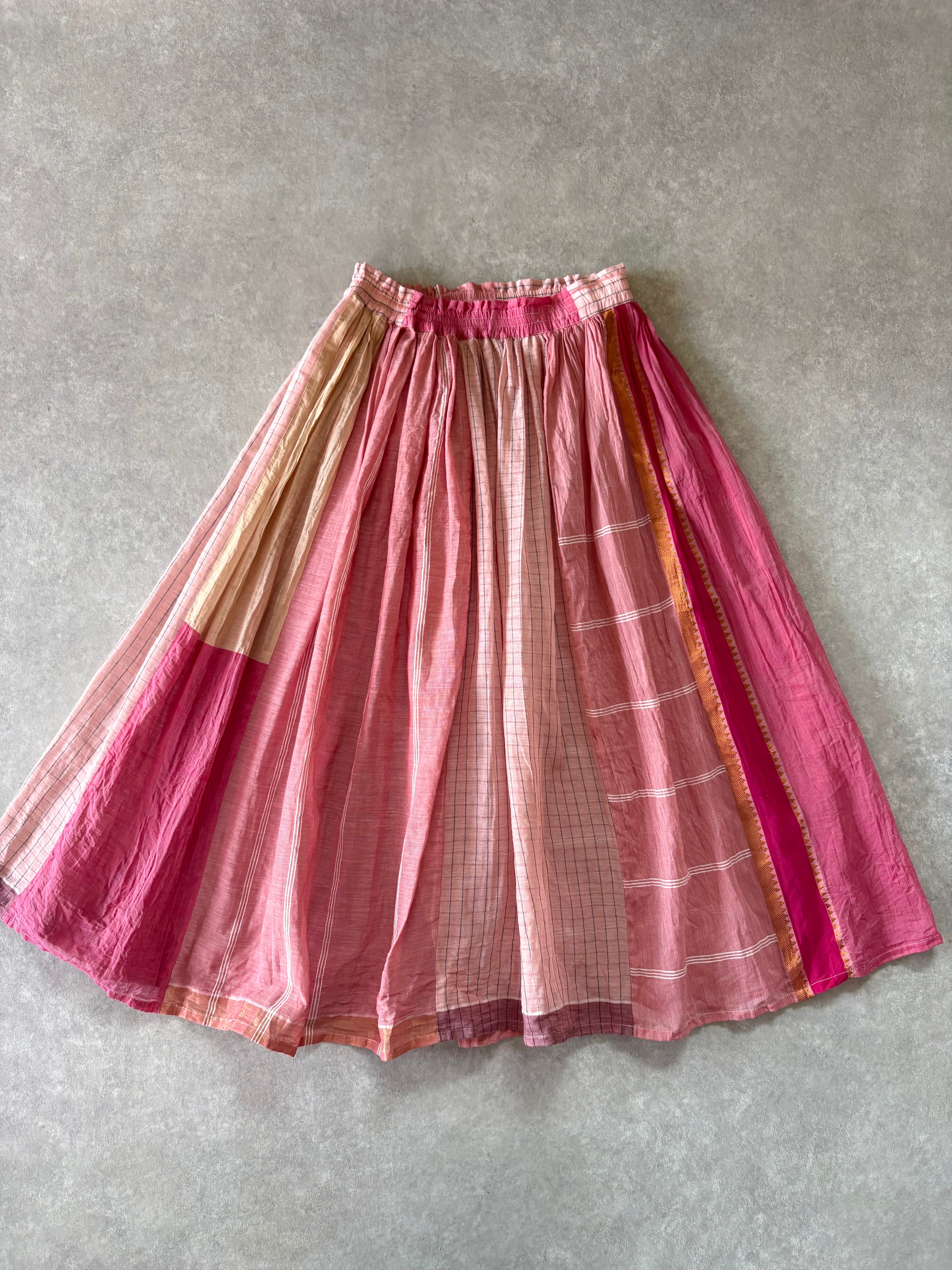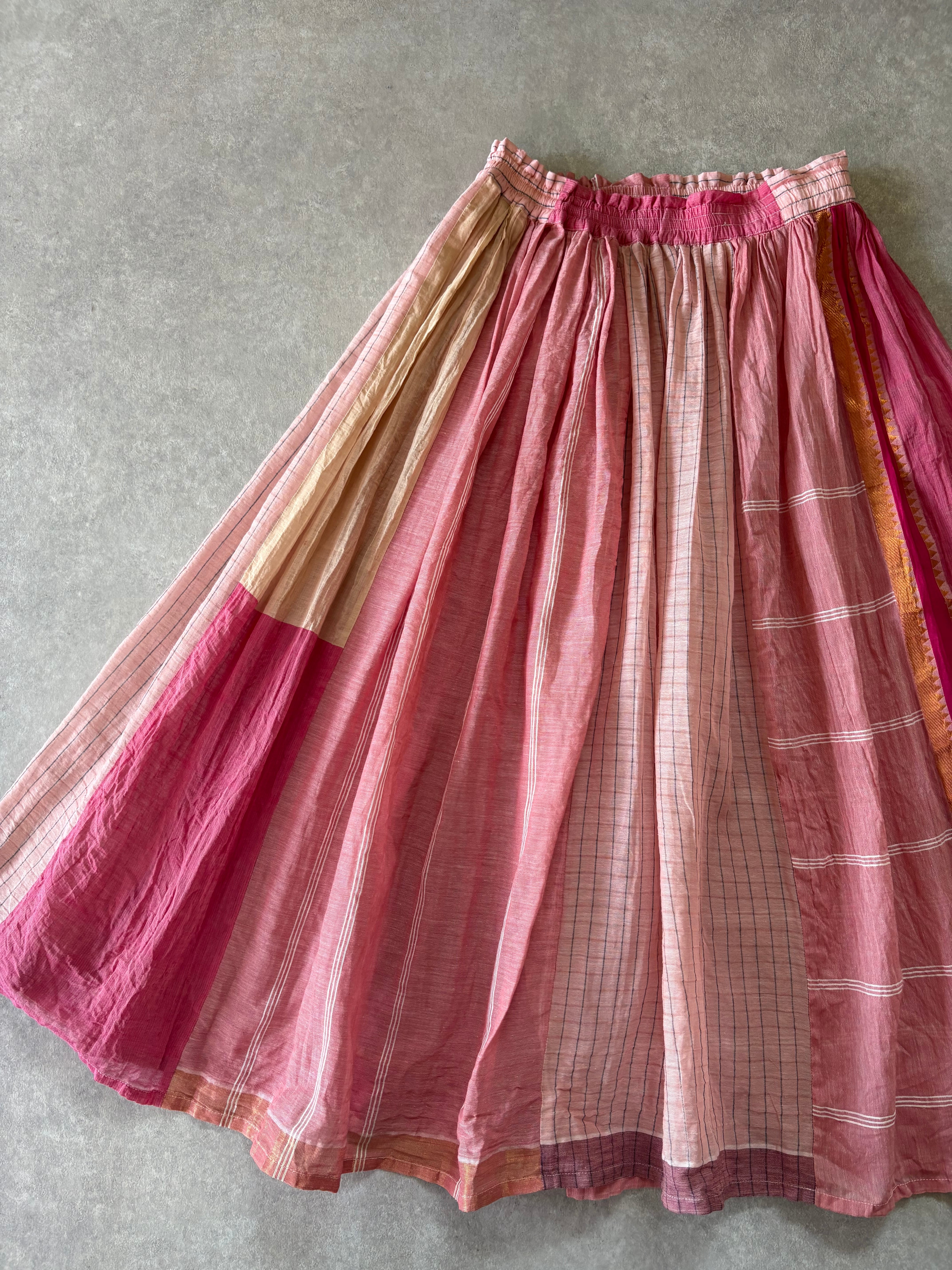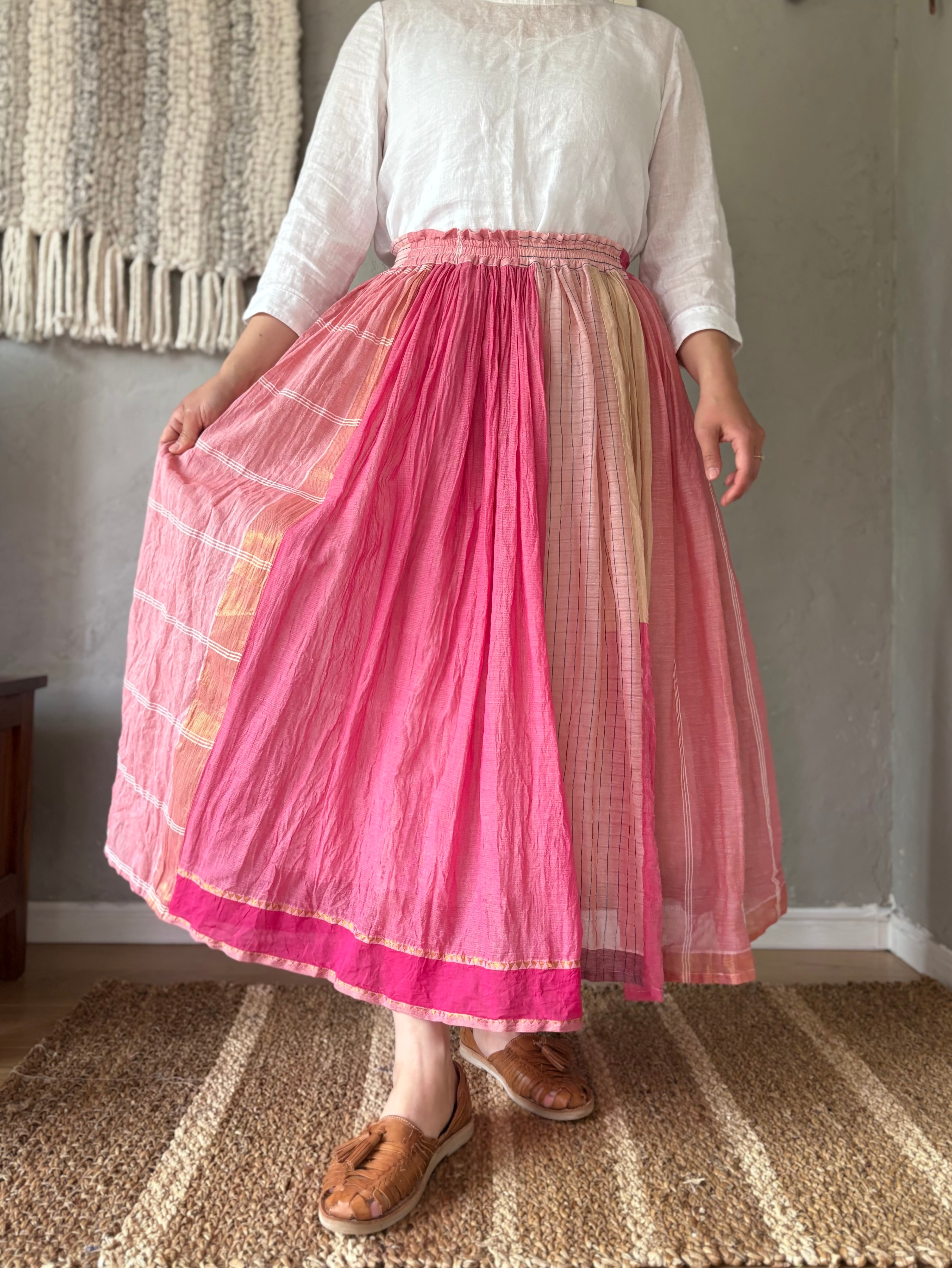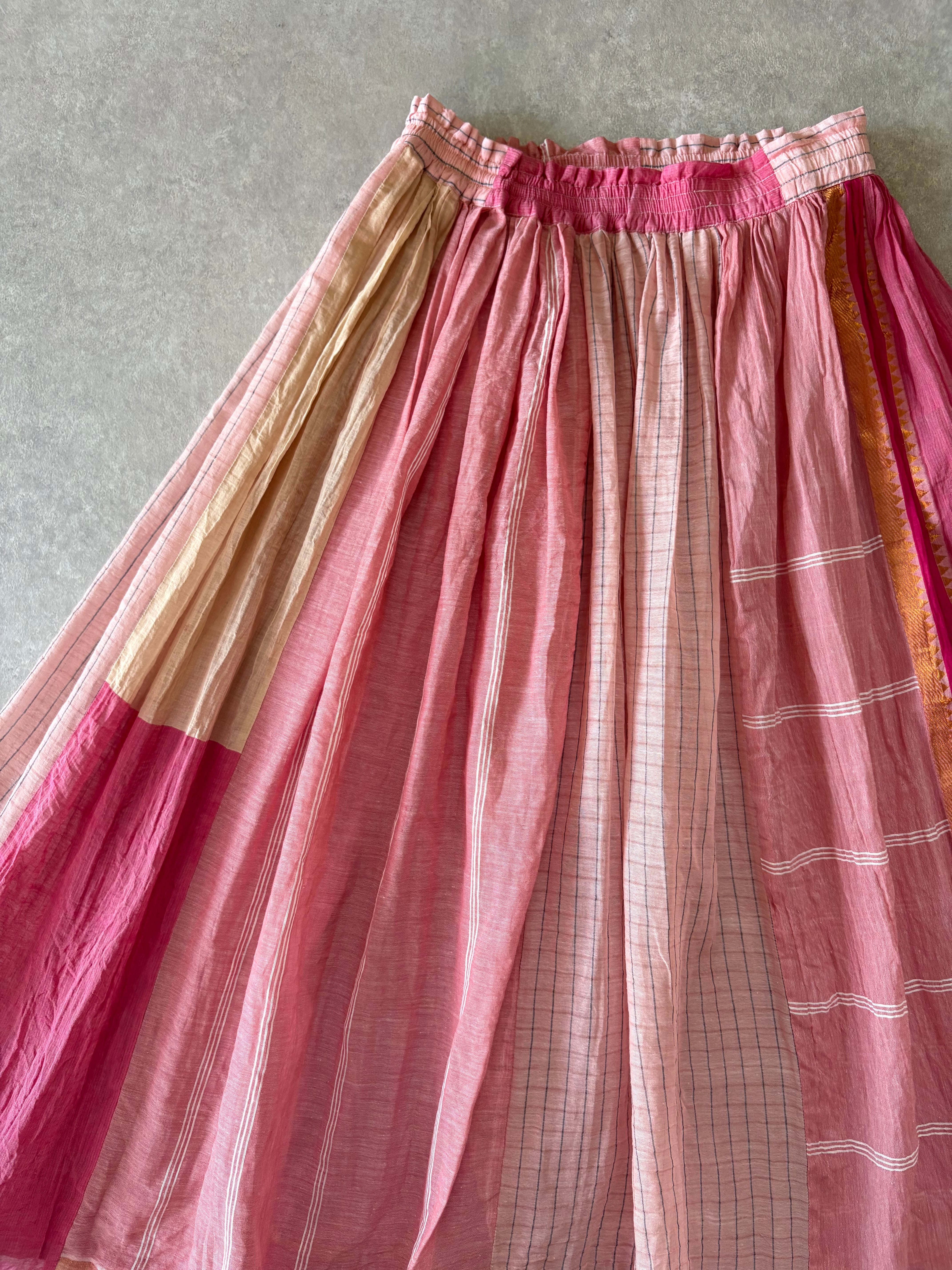 ハギレをパッチワークしたギャザースカート。