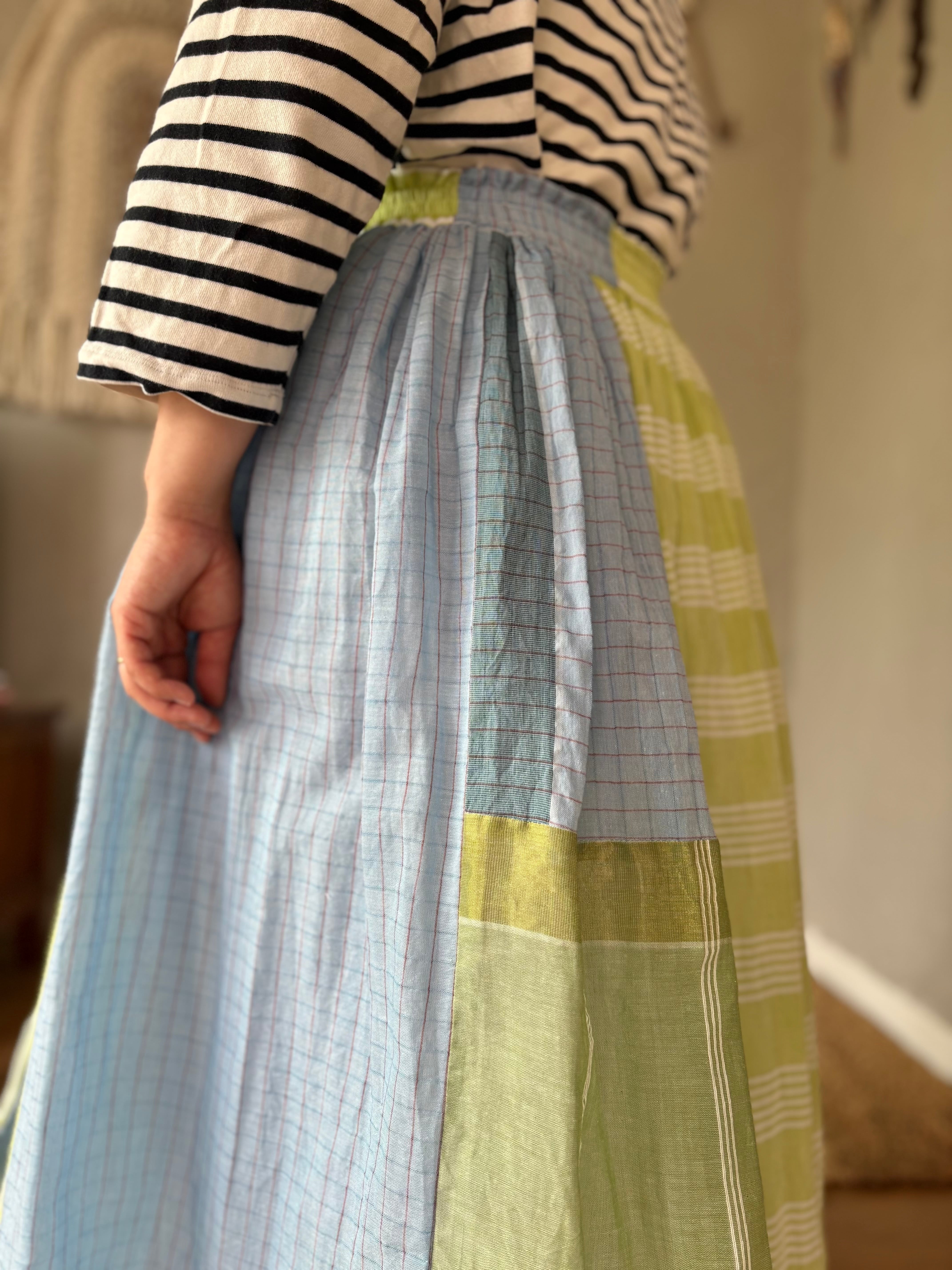 インドの手仕事の布と、日本の縫製で仕立てました。
