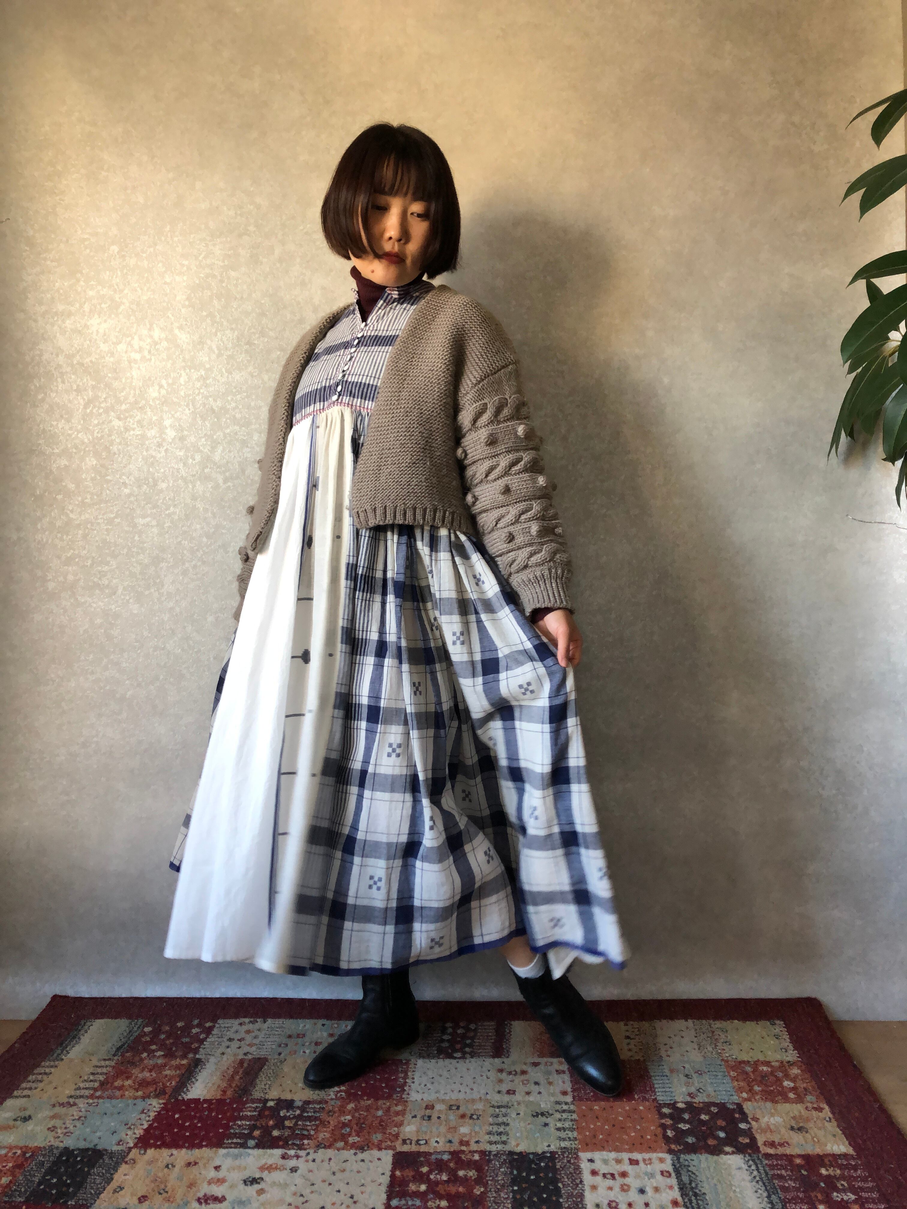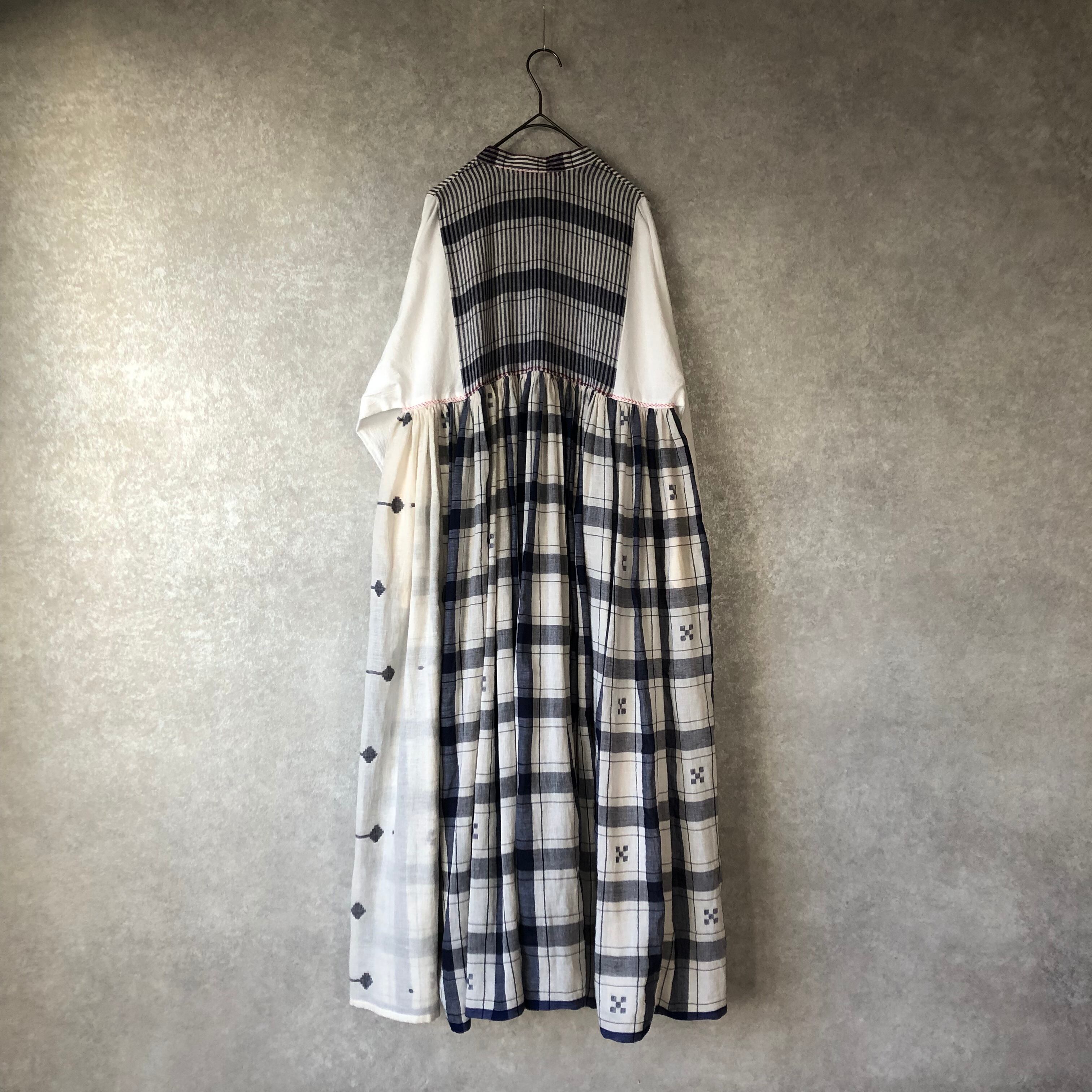カディコットンワンピース white×navy check