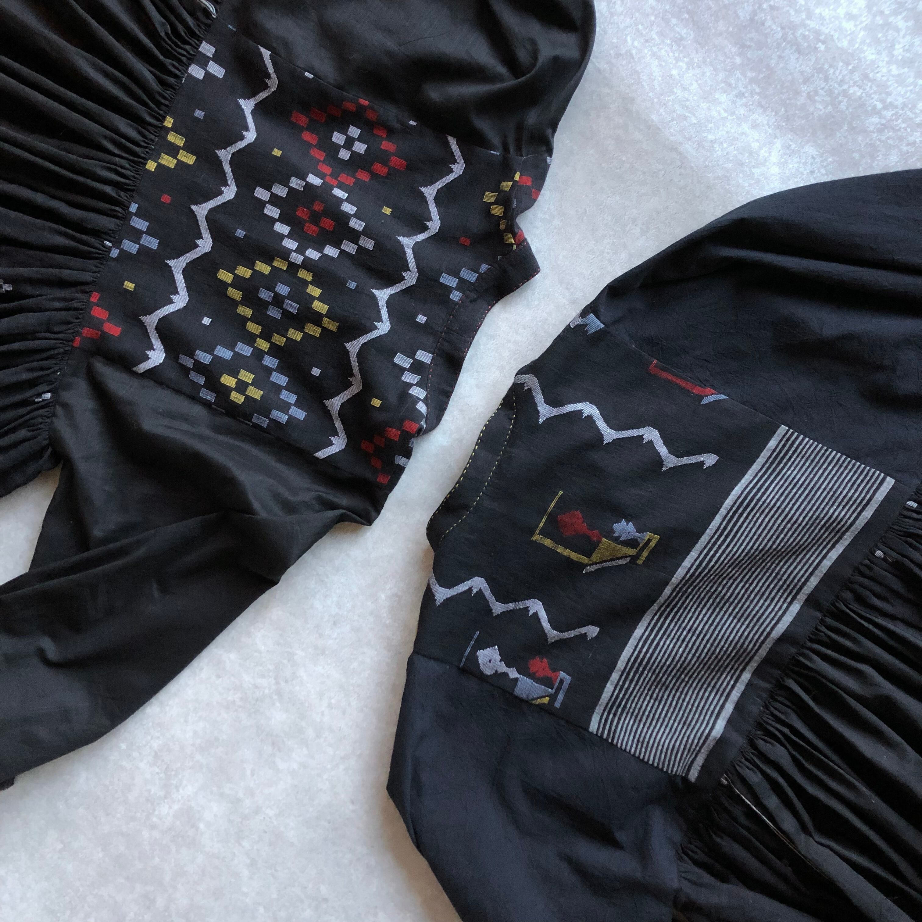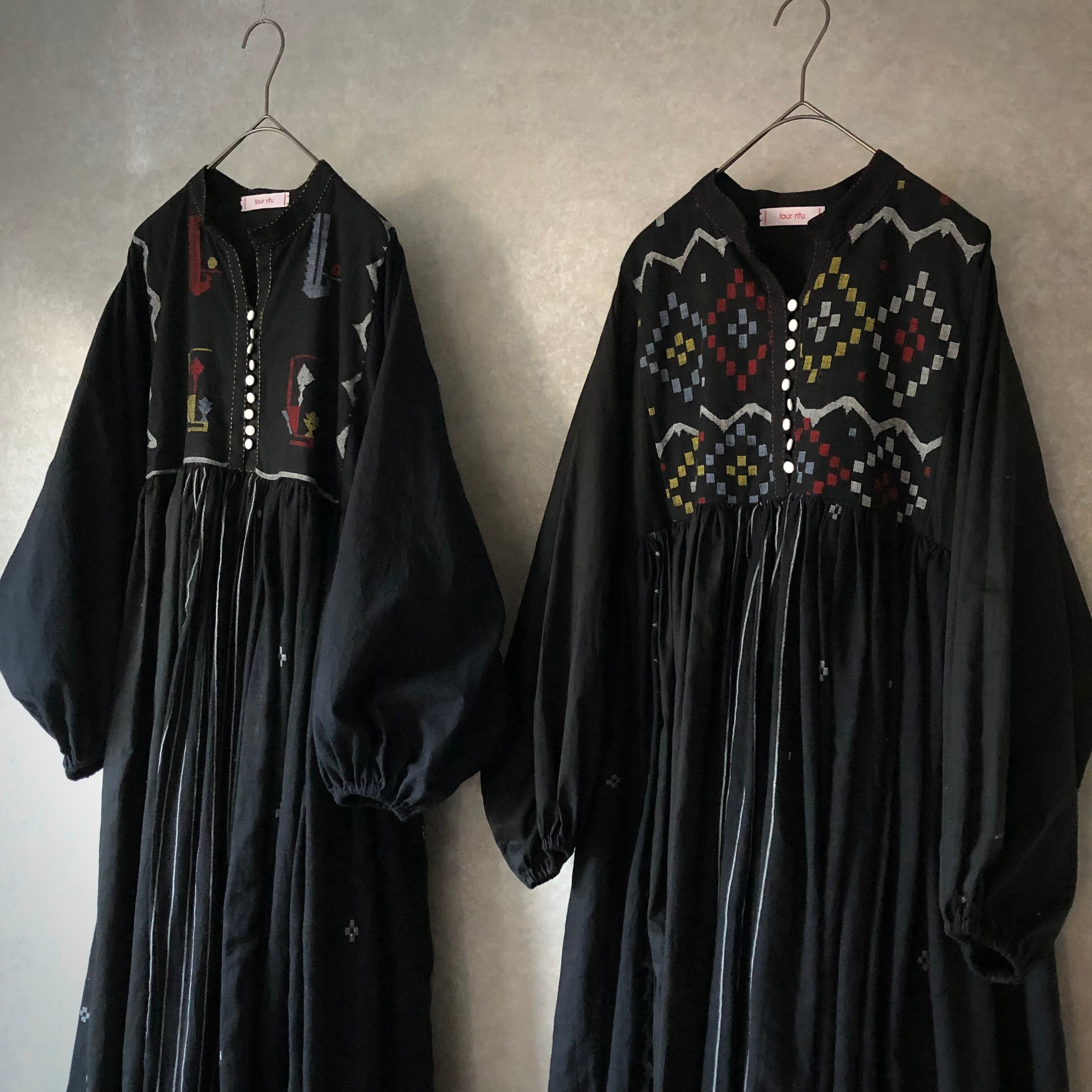 裾と身頃にはジャムダニ織のカラフルな織模様が。