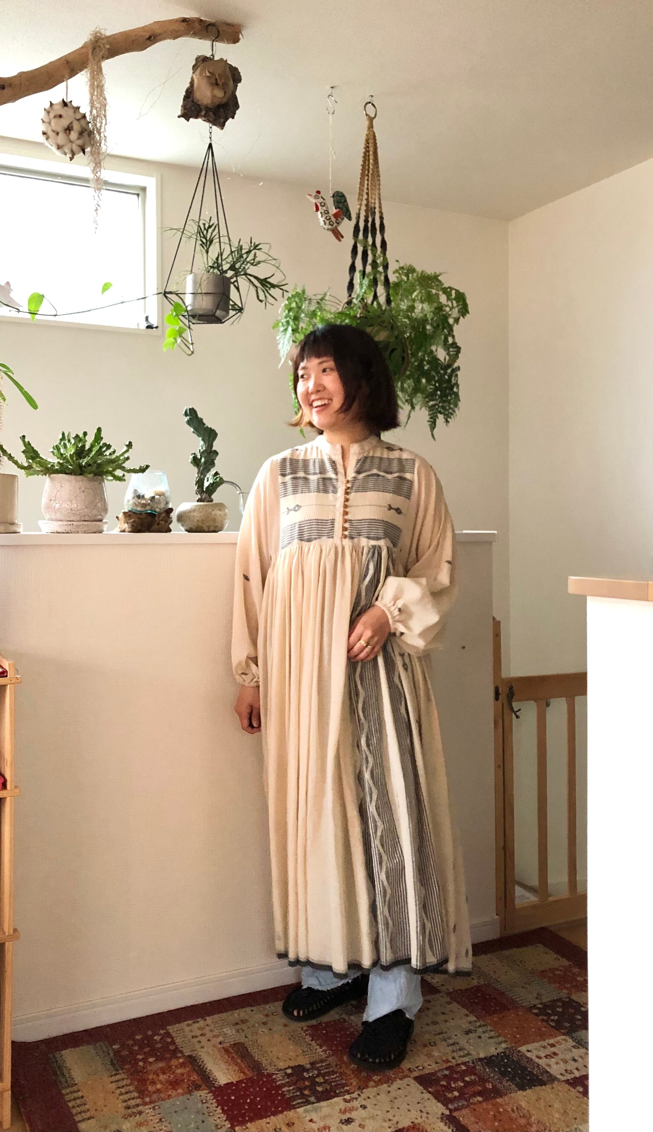 3.カディコットンボタンワンピース beigeお魚