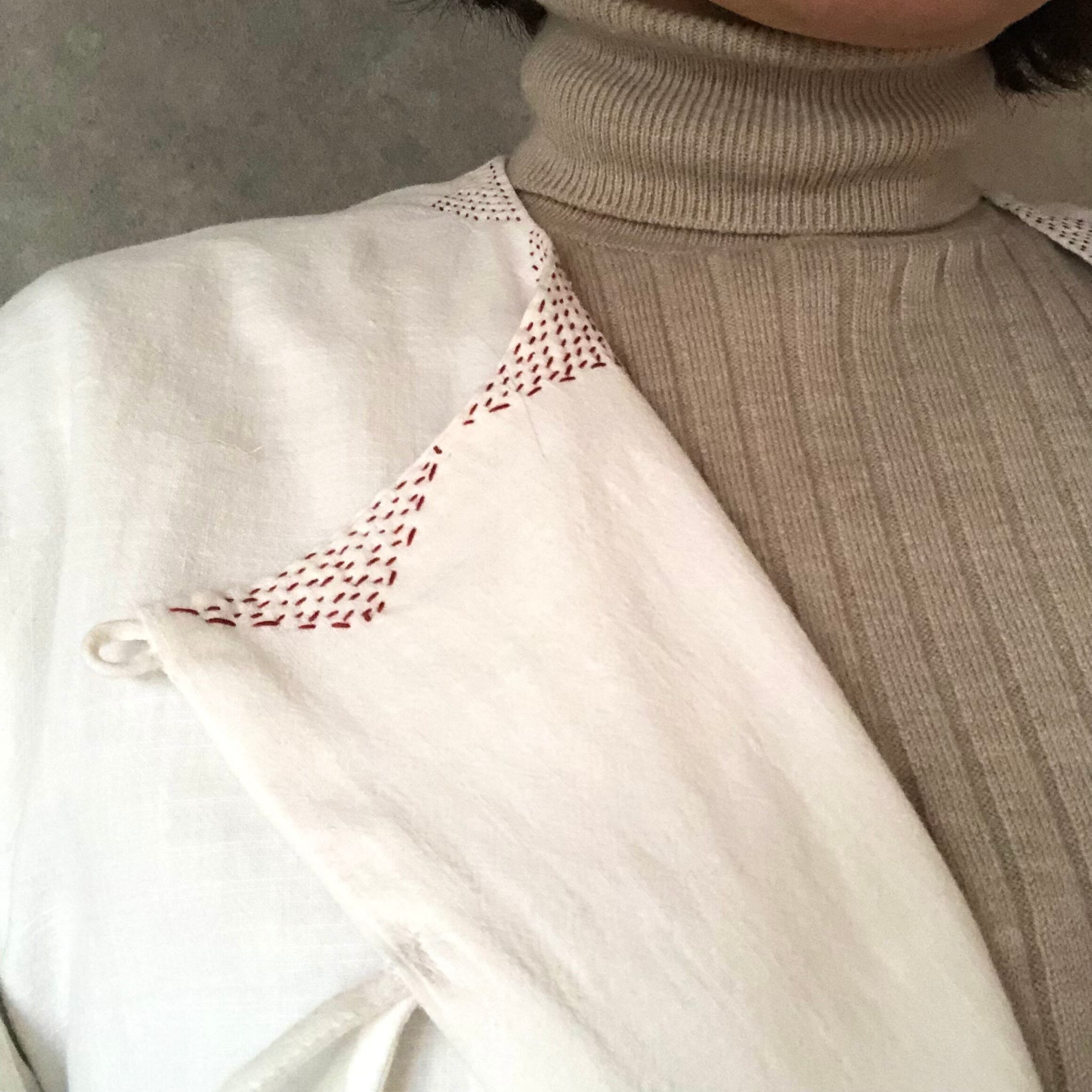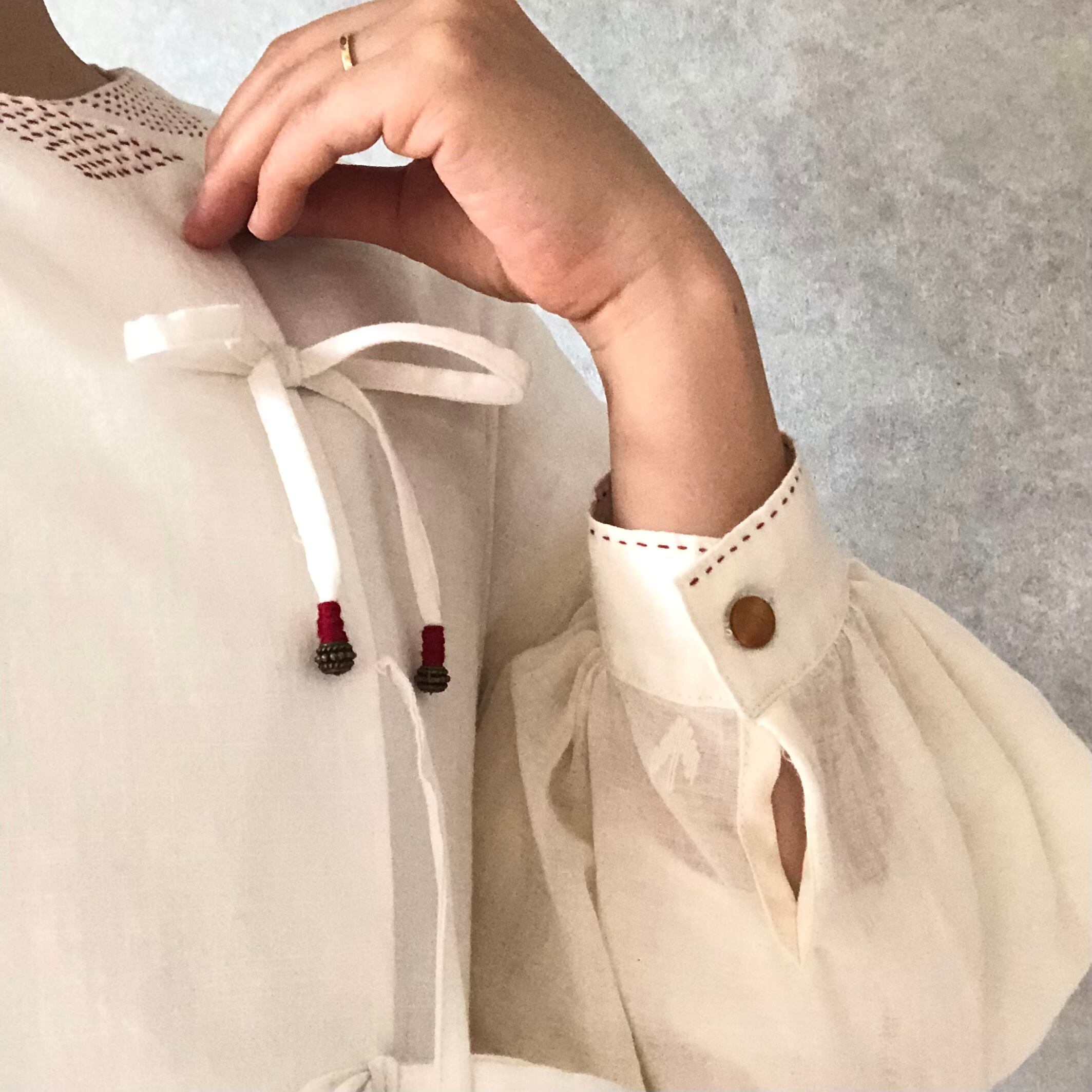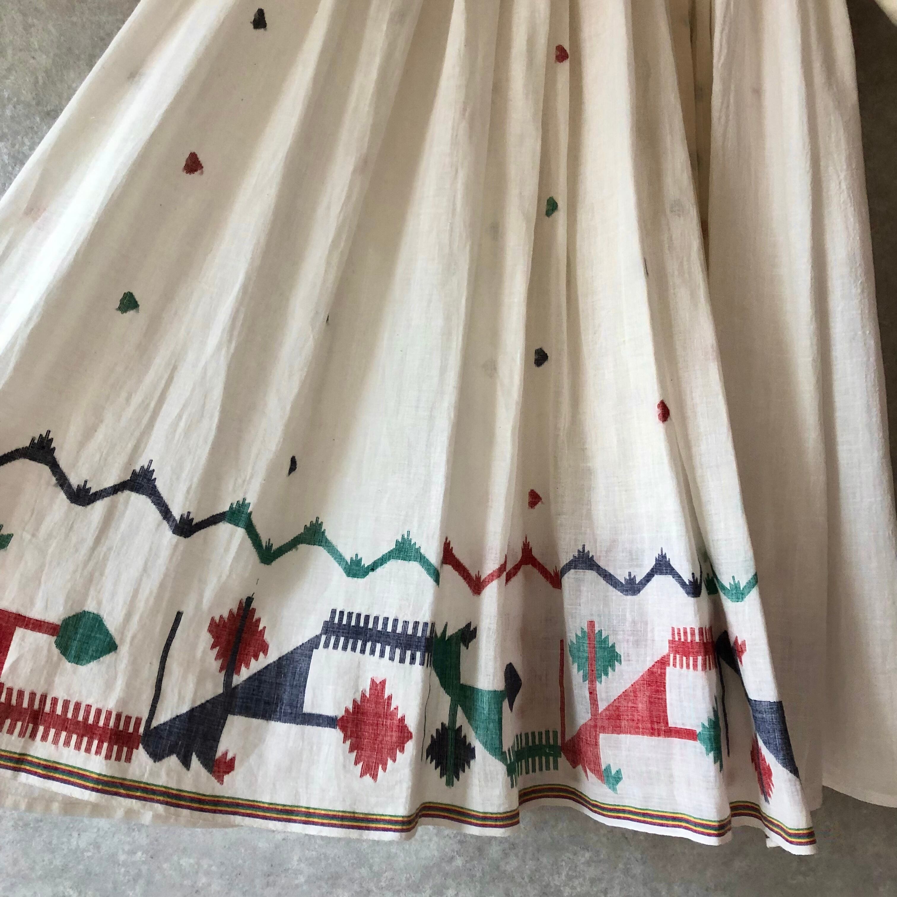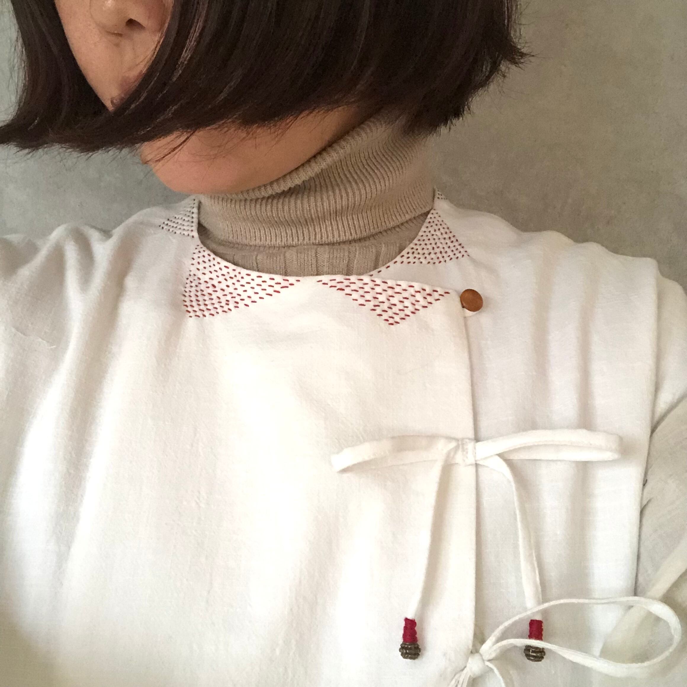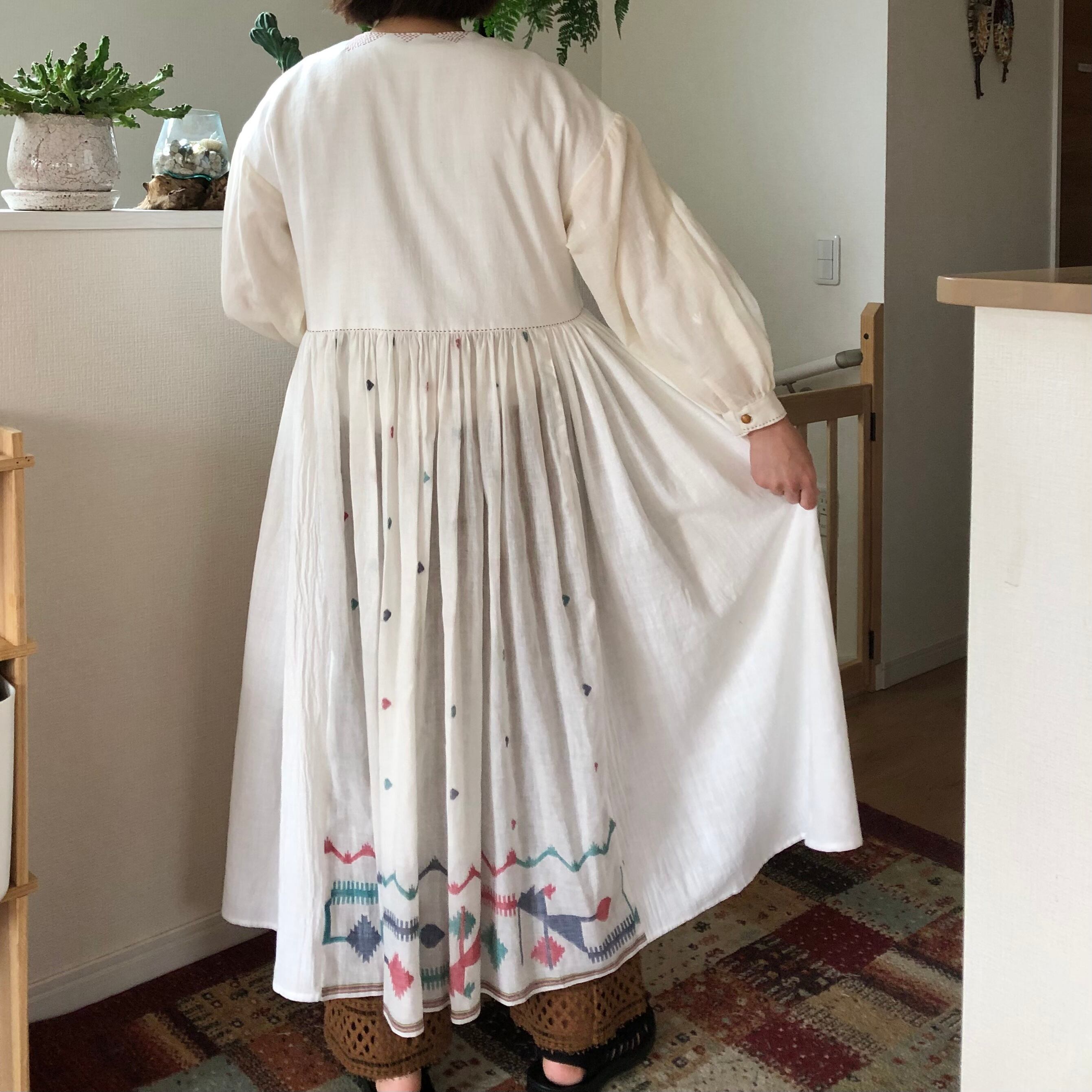 10b.【ステッチ色:赤】カディコットンリボンワンピース Heart jamdani