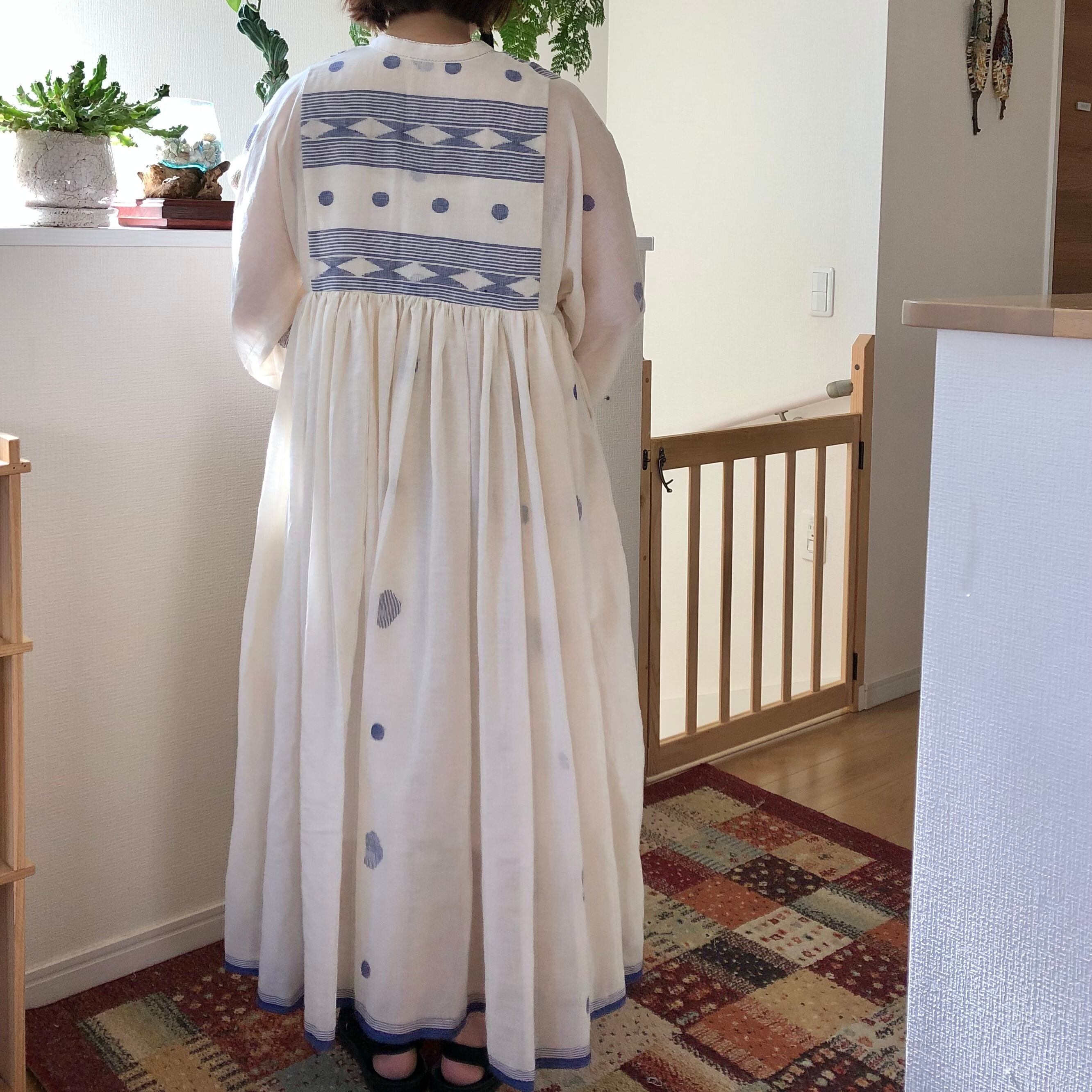 5b.【ステッチ色:マスタード】カディコットンボタンワンピース