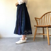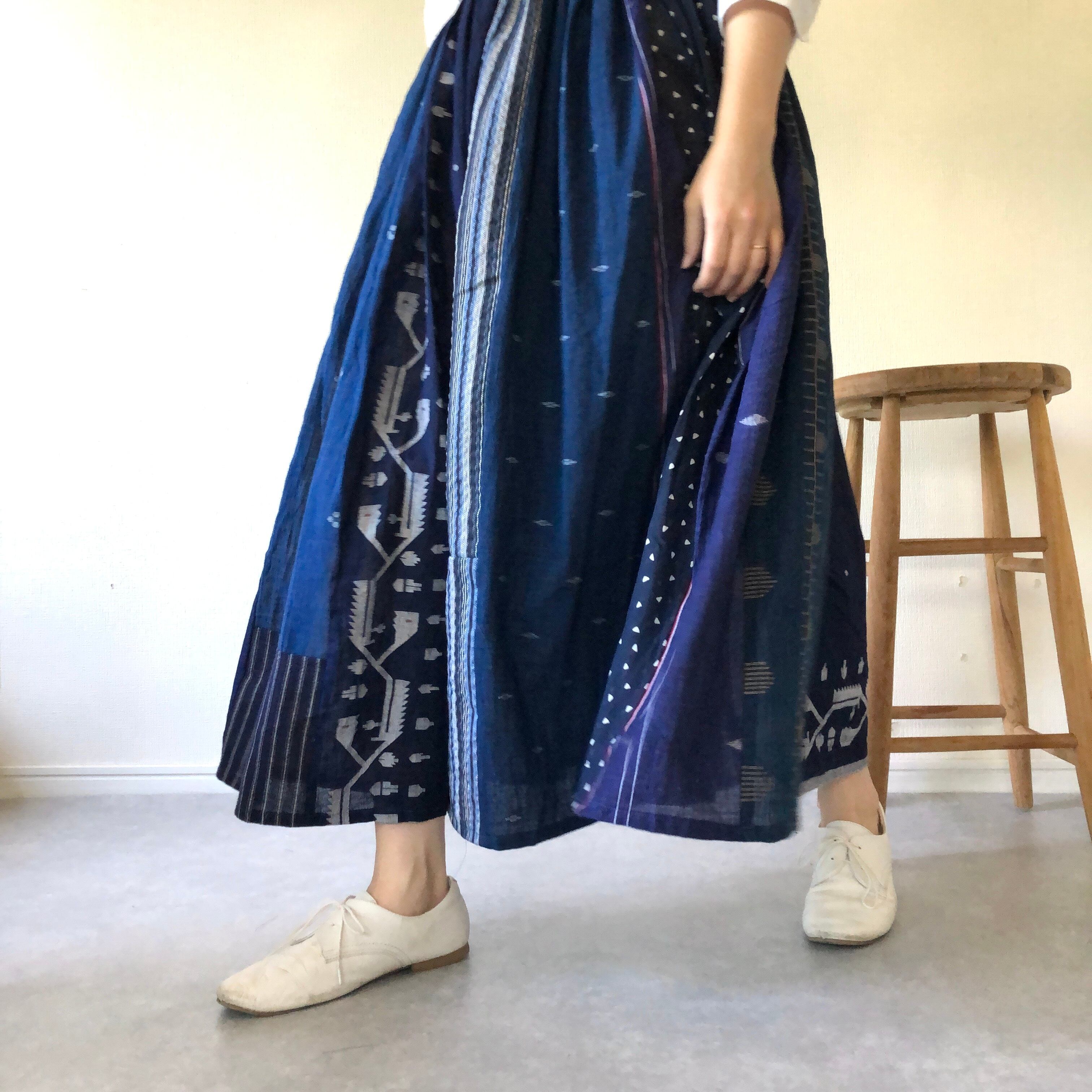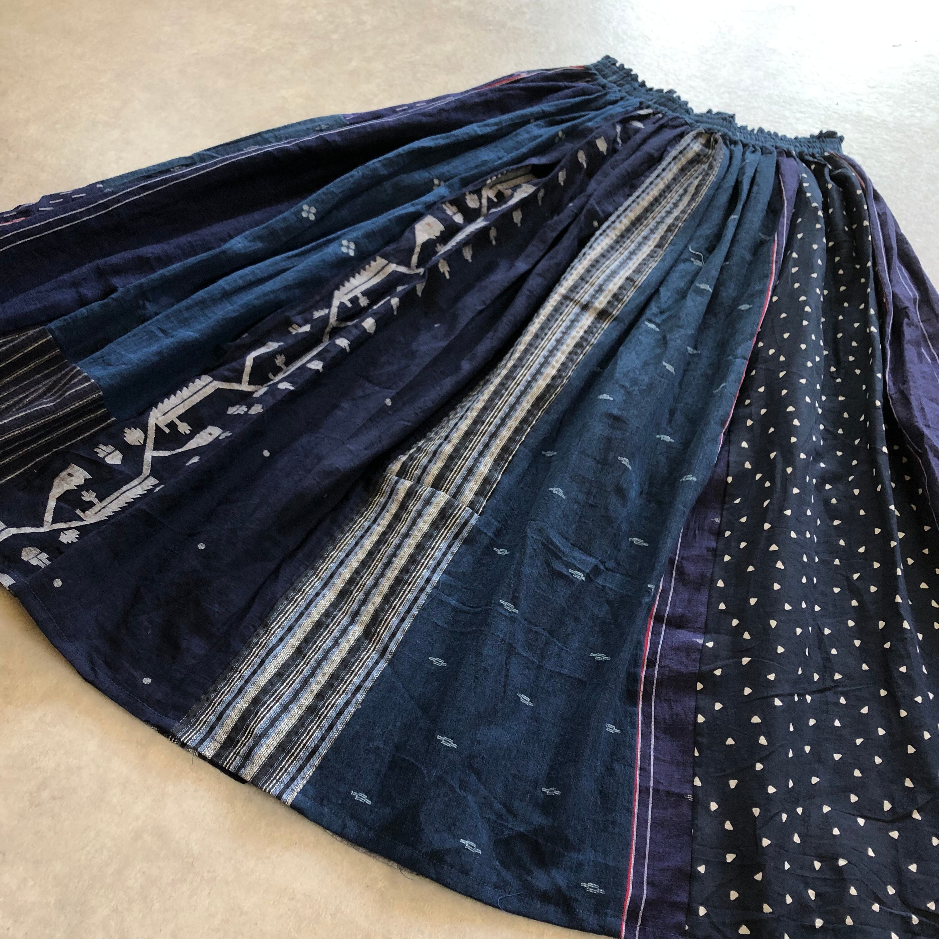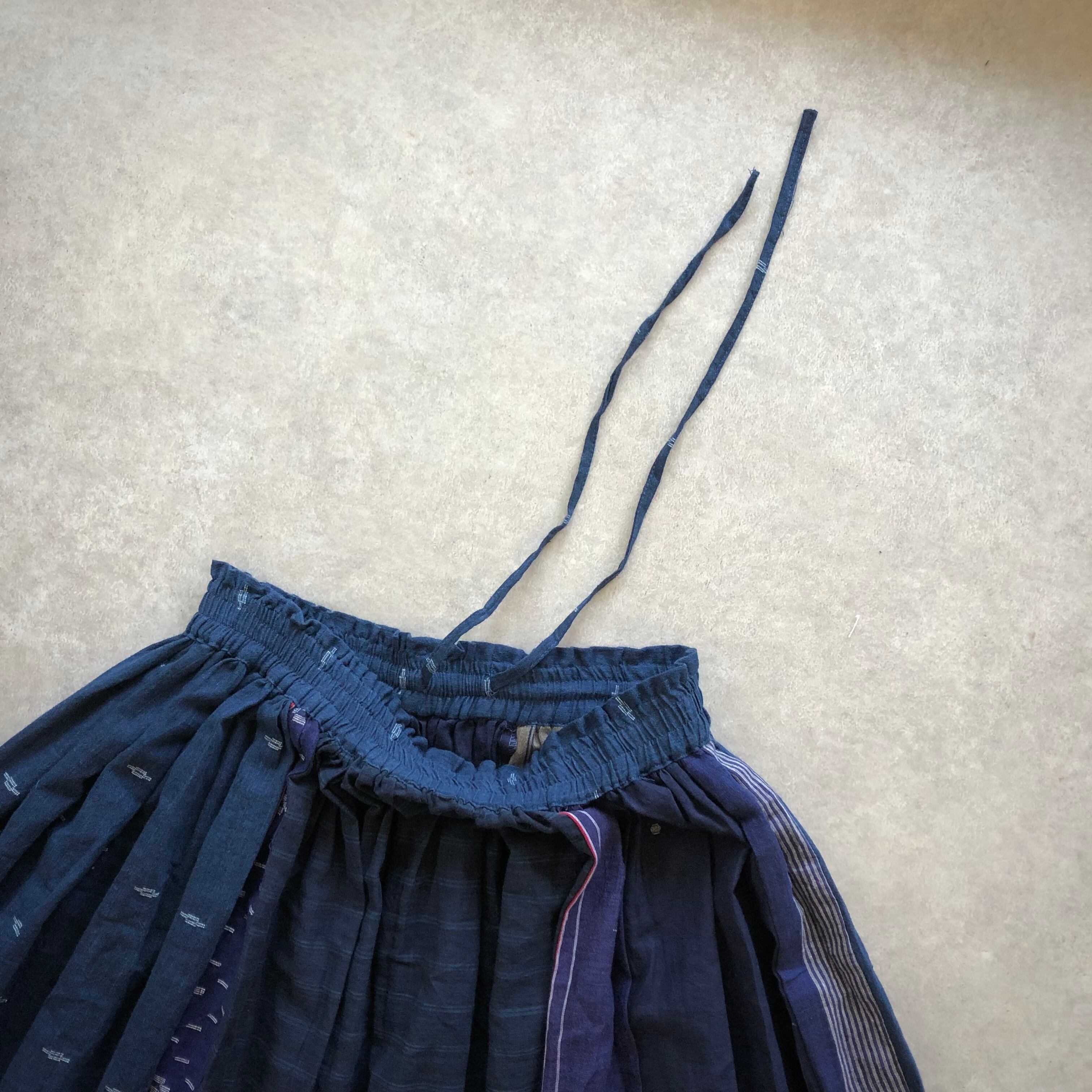 紺No.3【しじらさん】丈88cm カディコットンギャザースカート