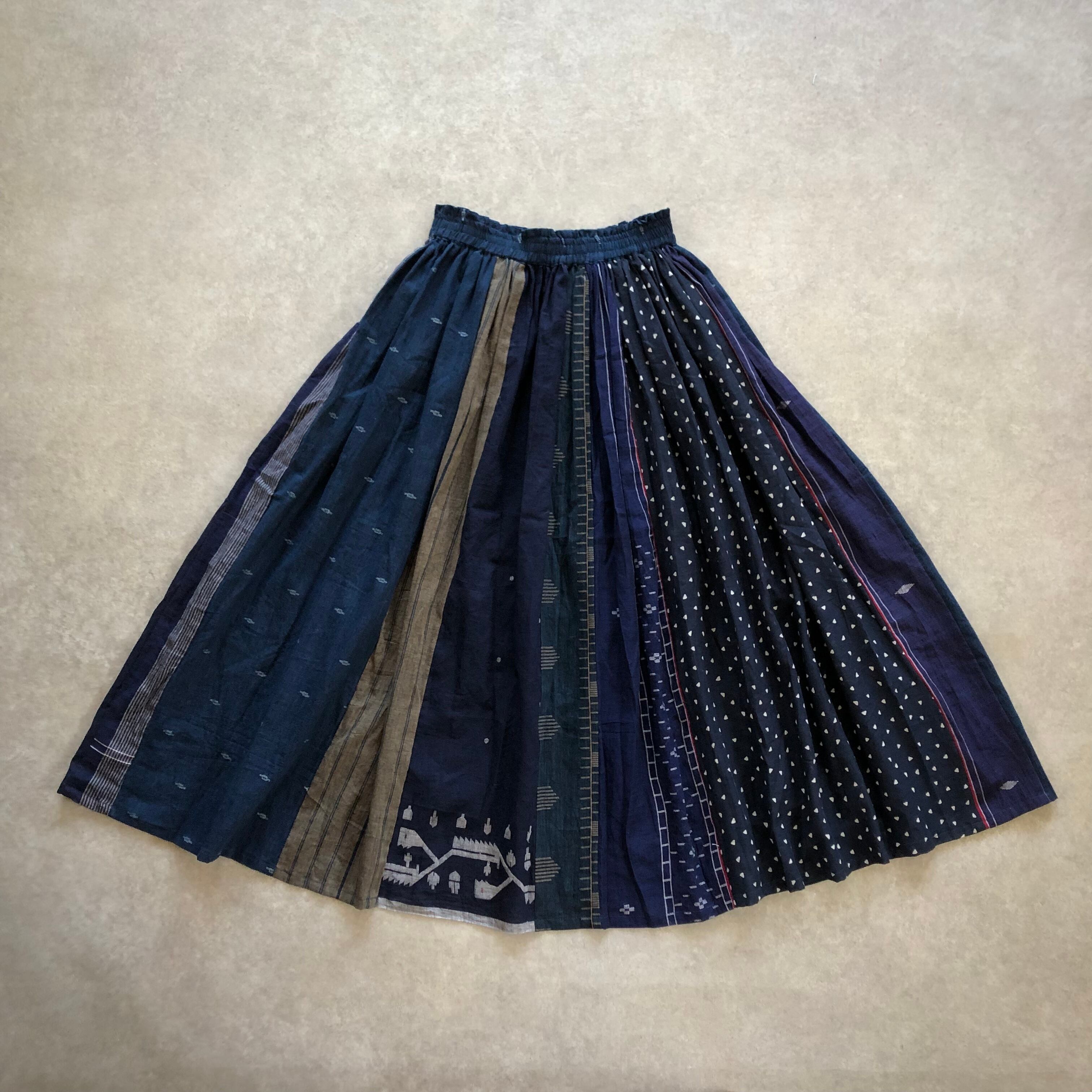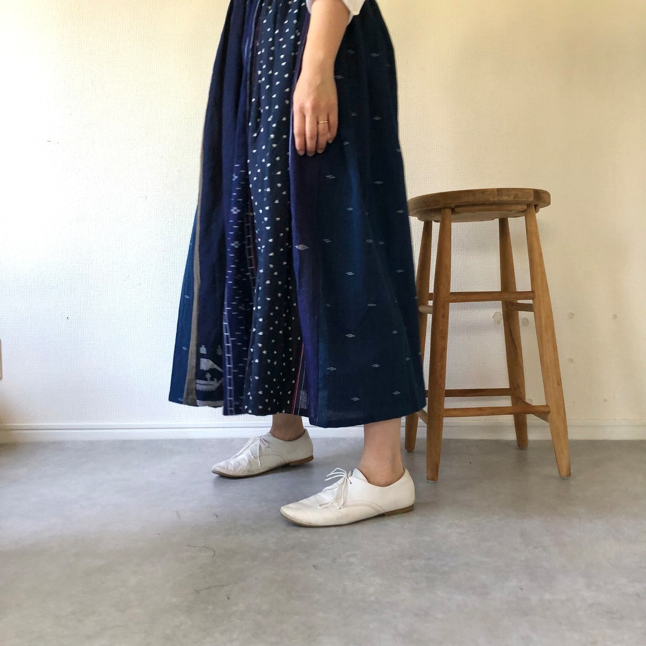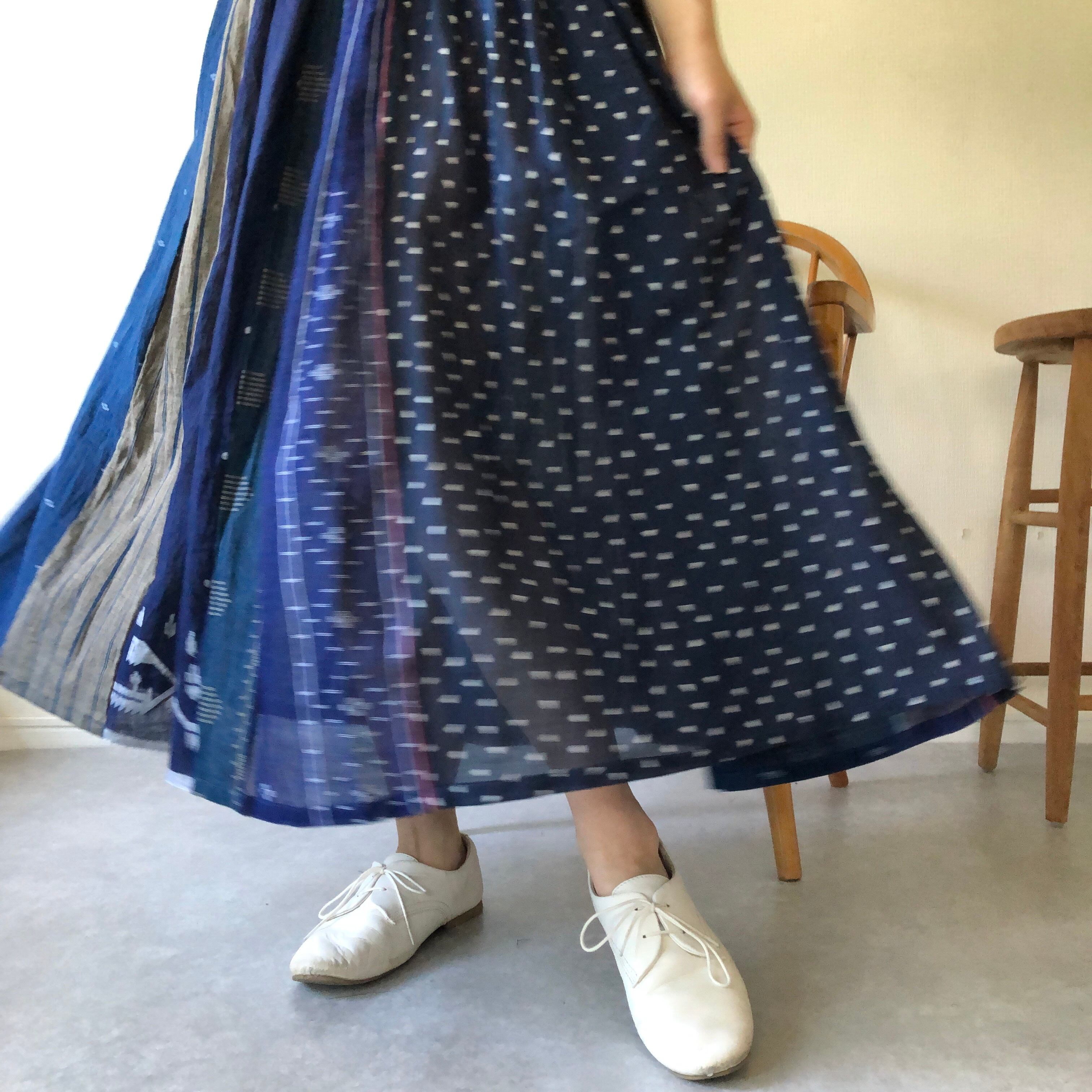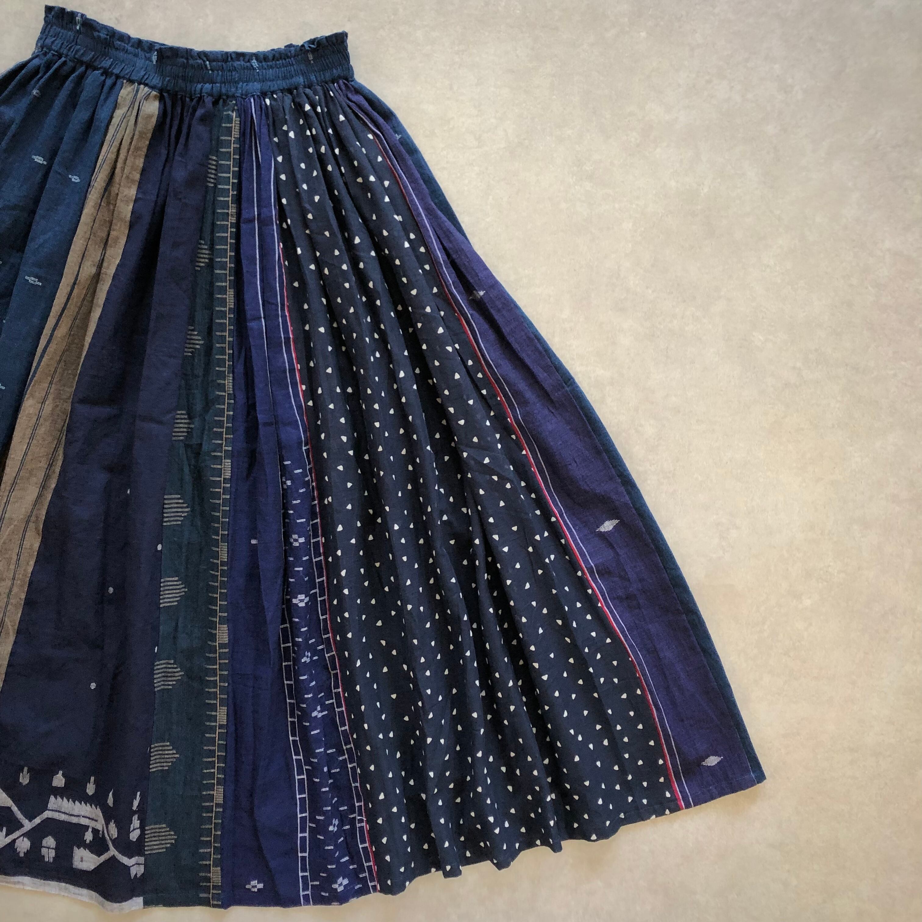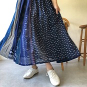 紺No.4【さんかく水玉さん】丈88cm カディコットンギャザースカート