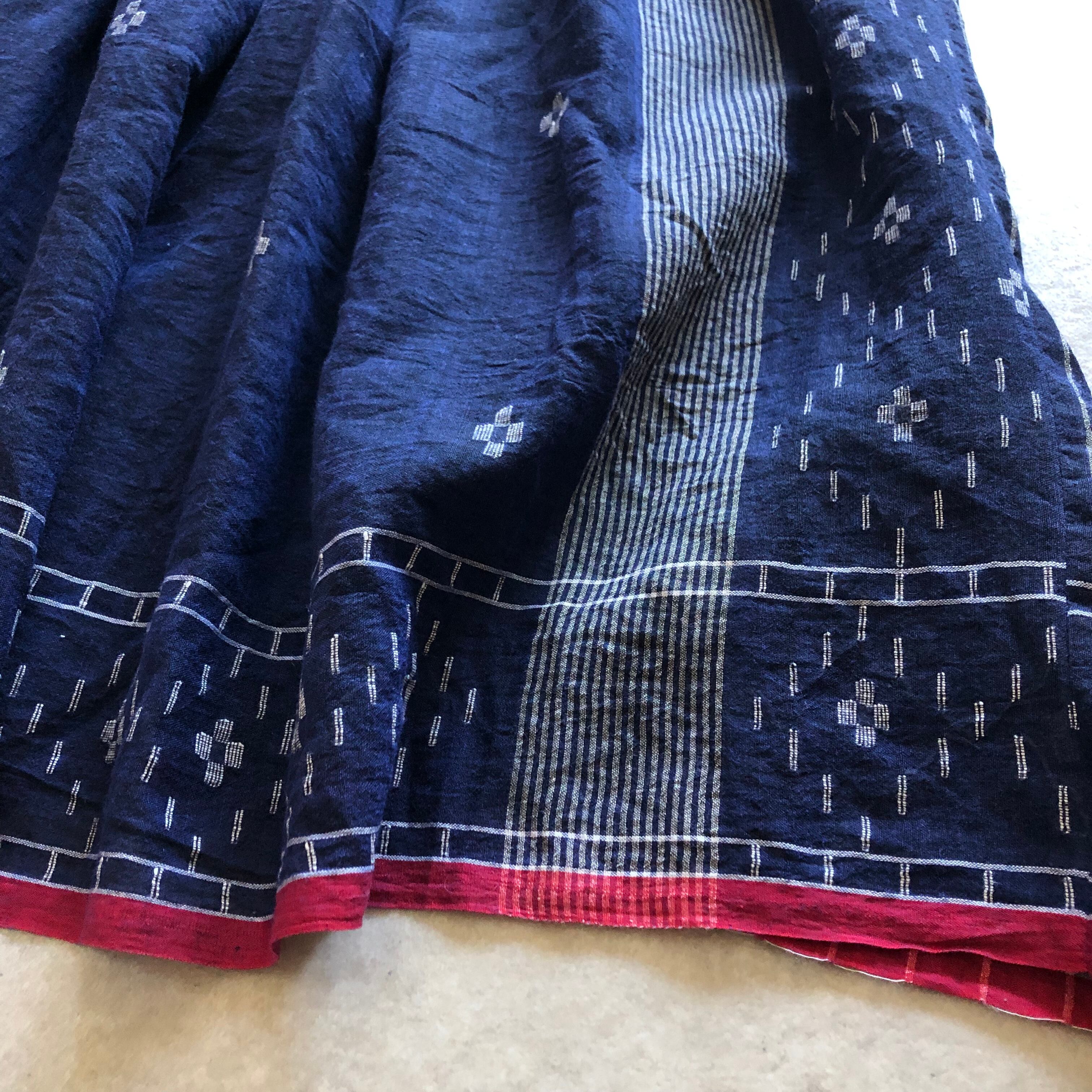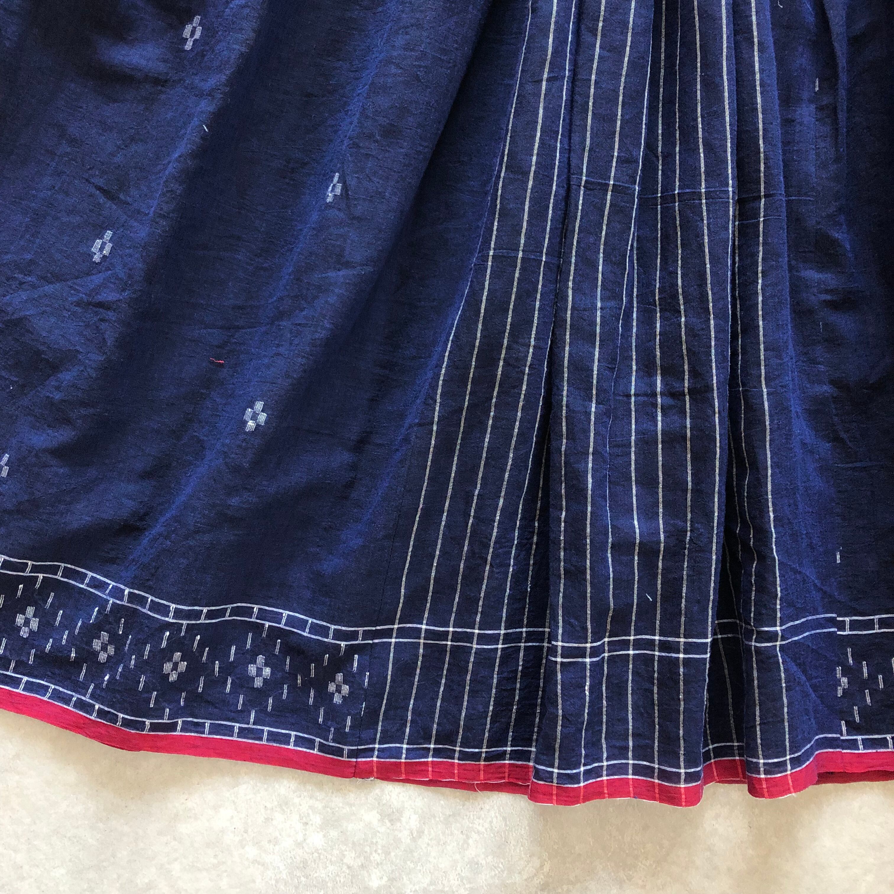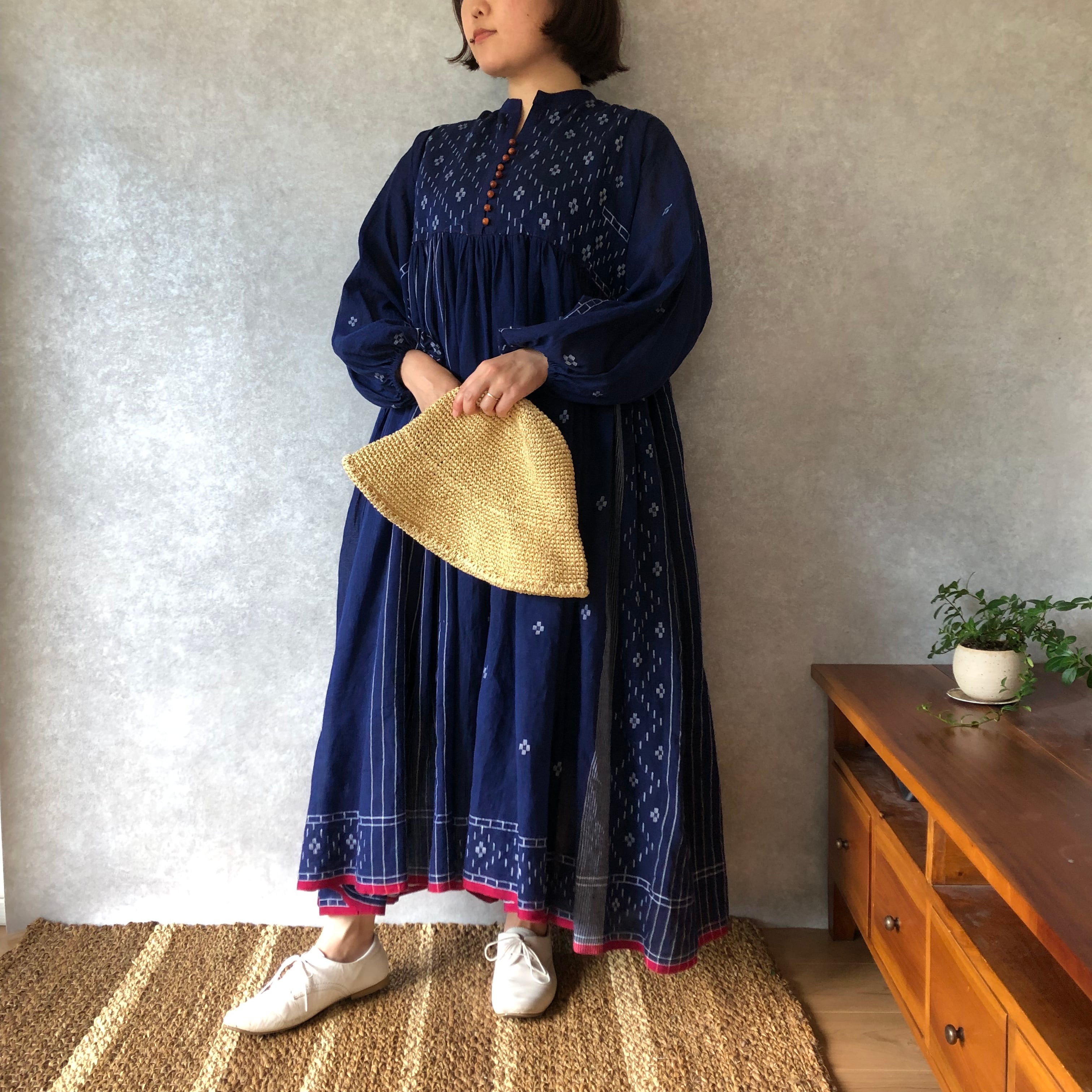 大胆なジャムダニ織の柄が身頃、スカートに施されていますが、