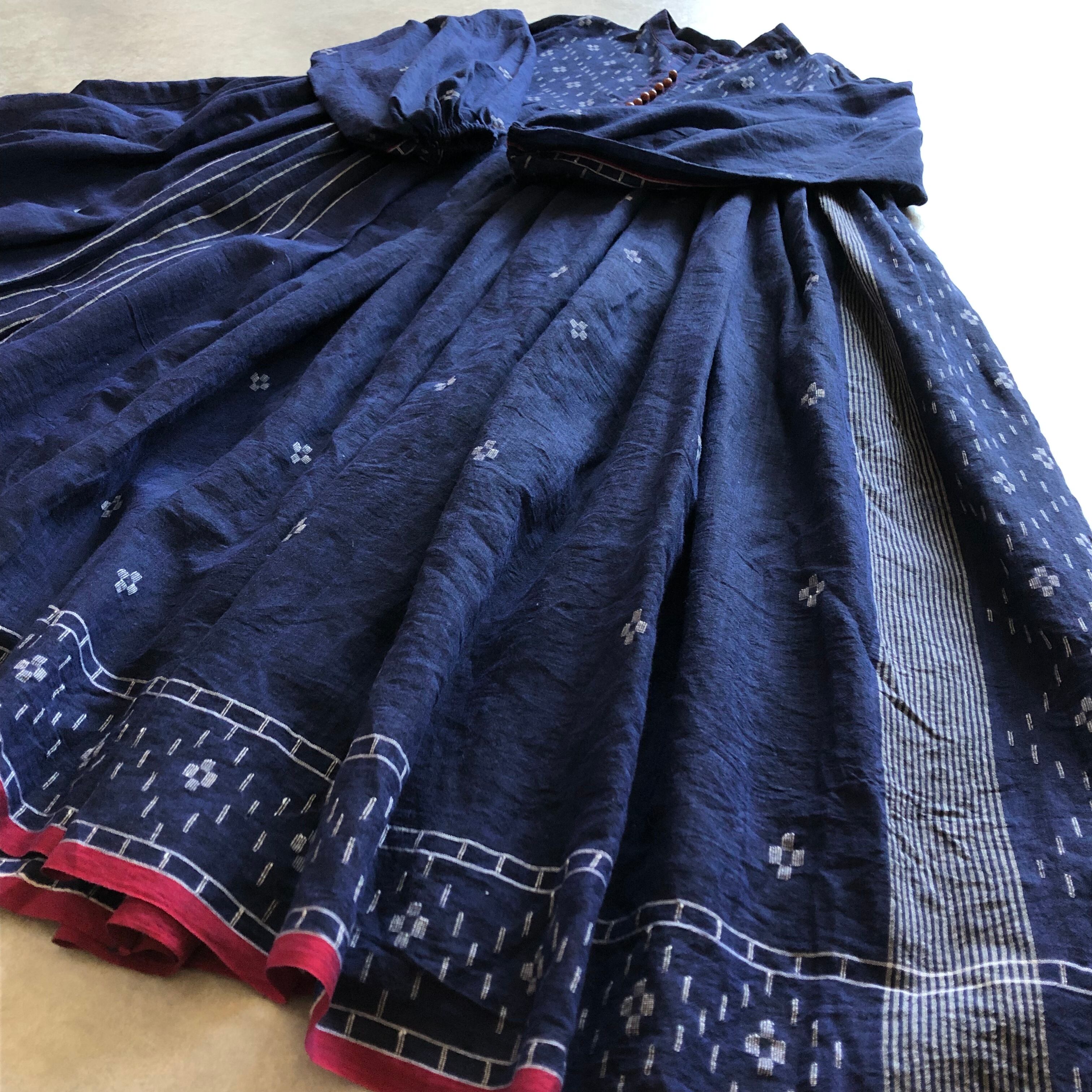 6.5mの長さのインドのサリーを丸ごと1枚使用してこの1着のワンピースを作りました。