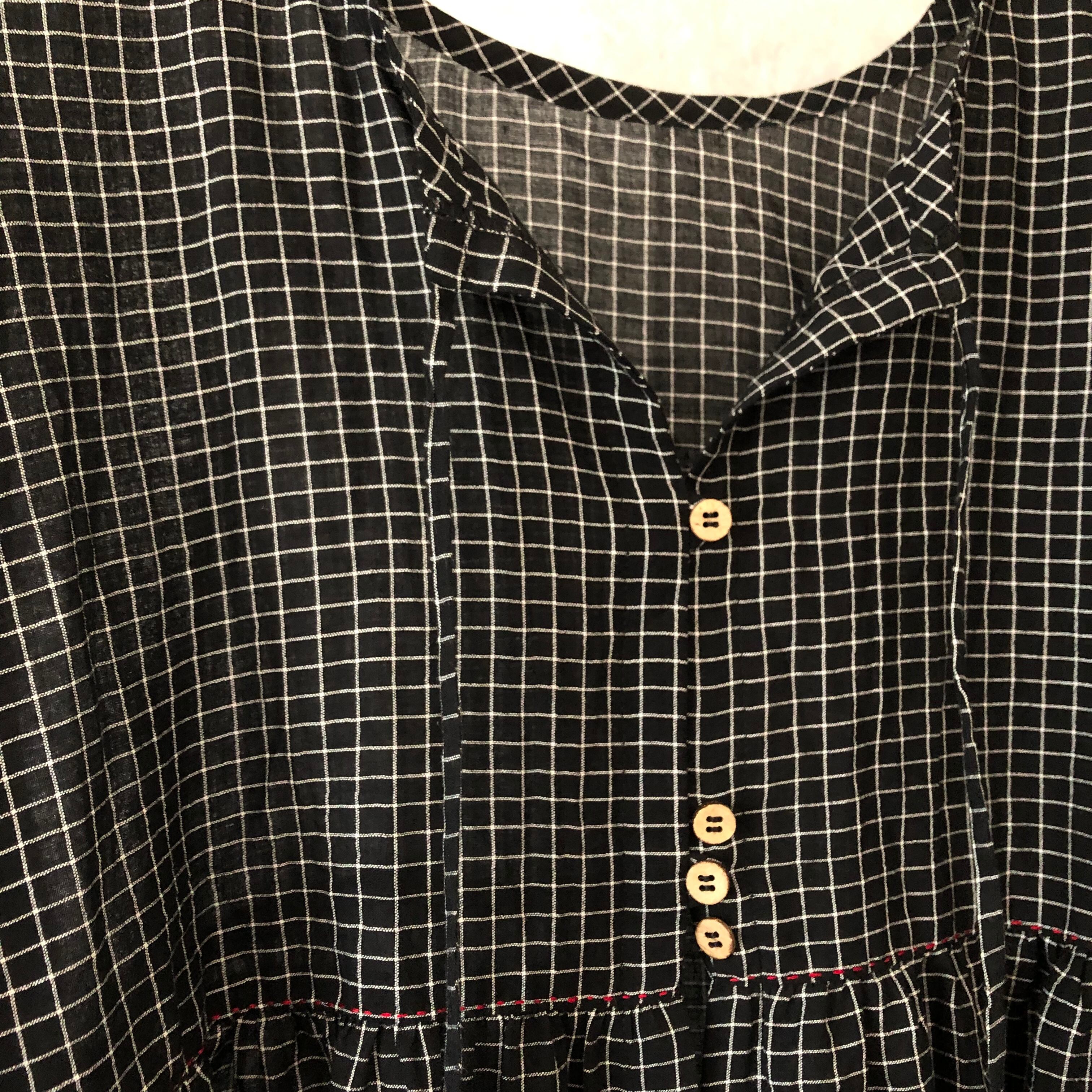 片方はシンプルなラウンドネック、もう片方はリボンとボタンで違った印象に。