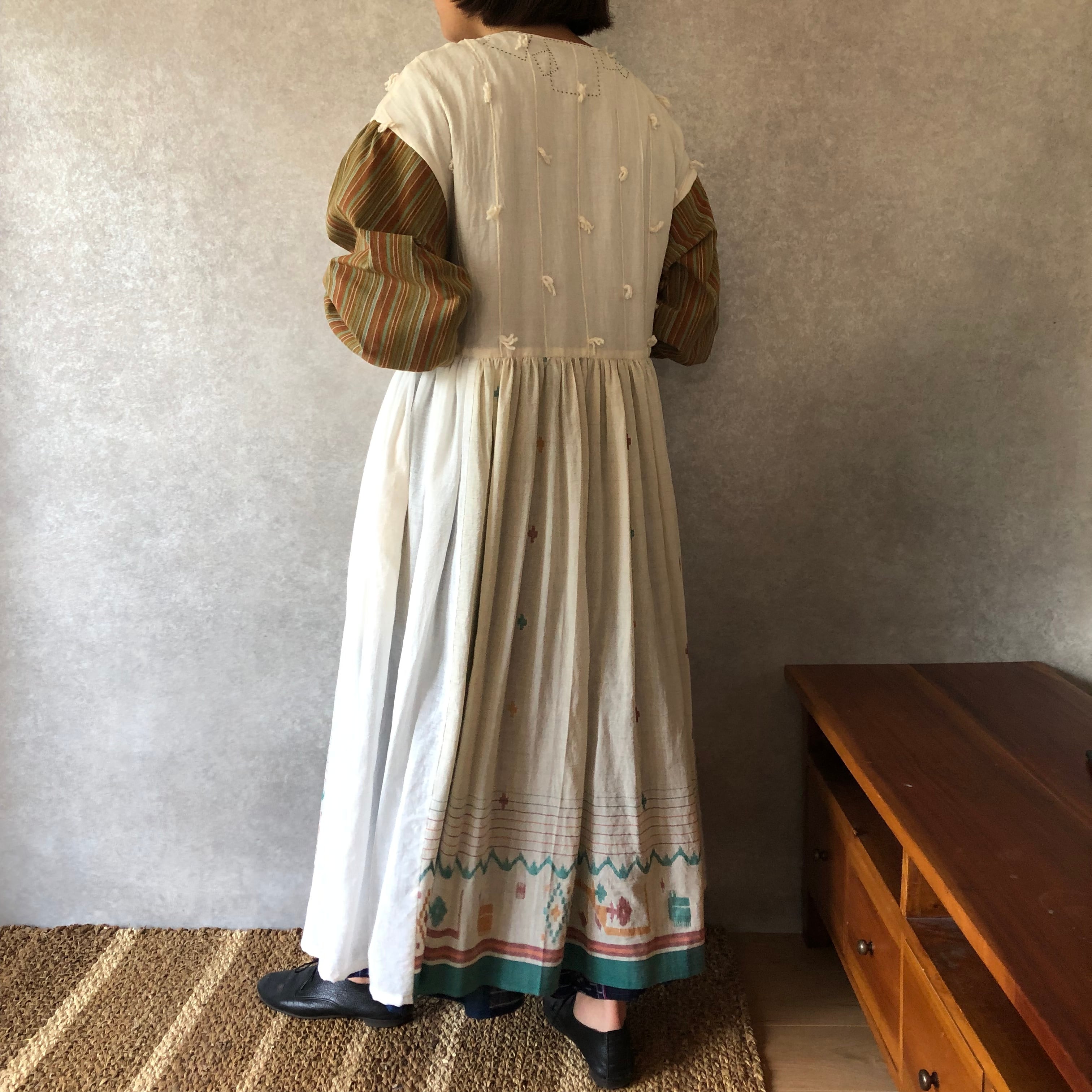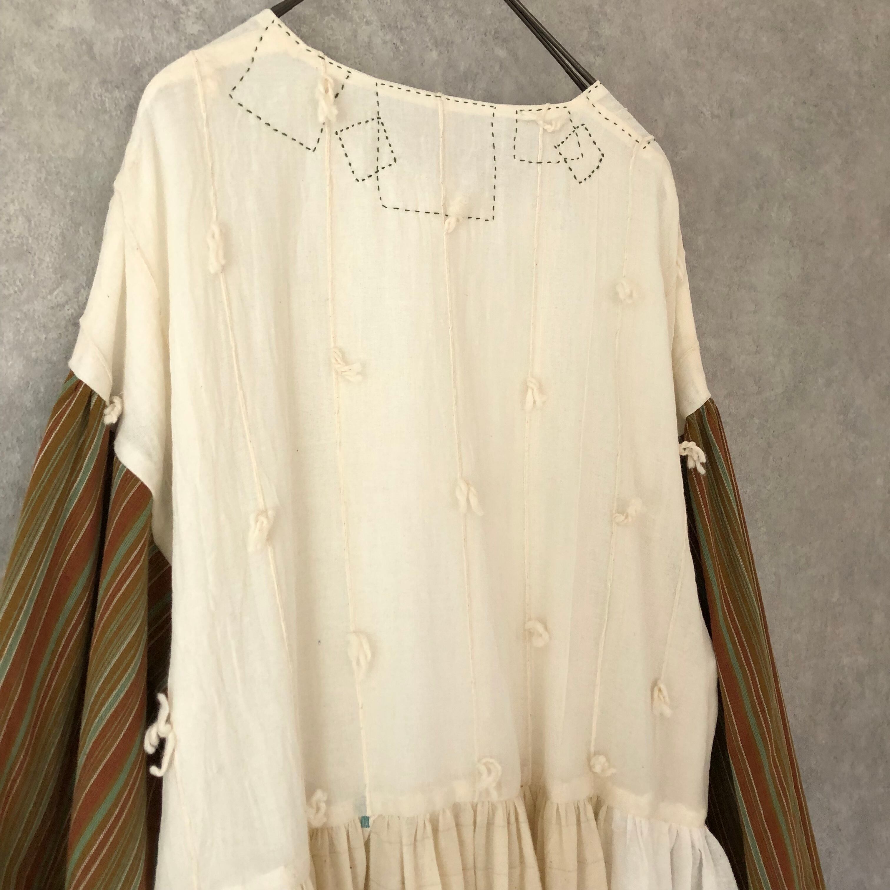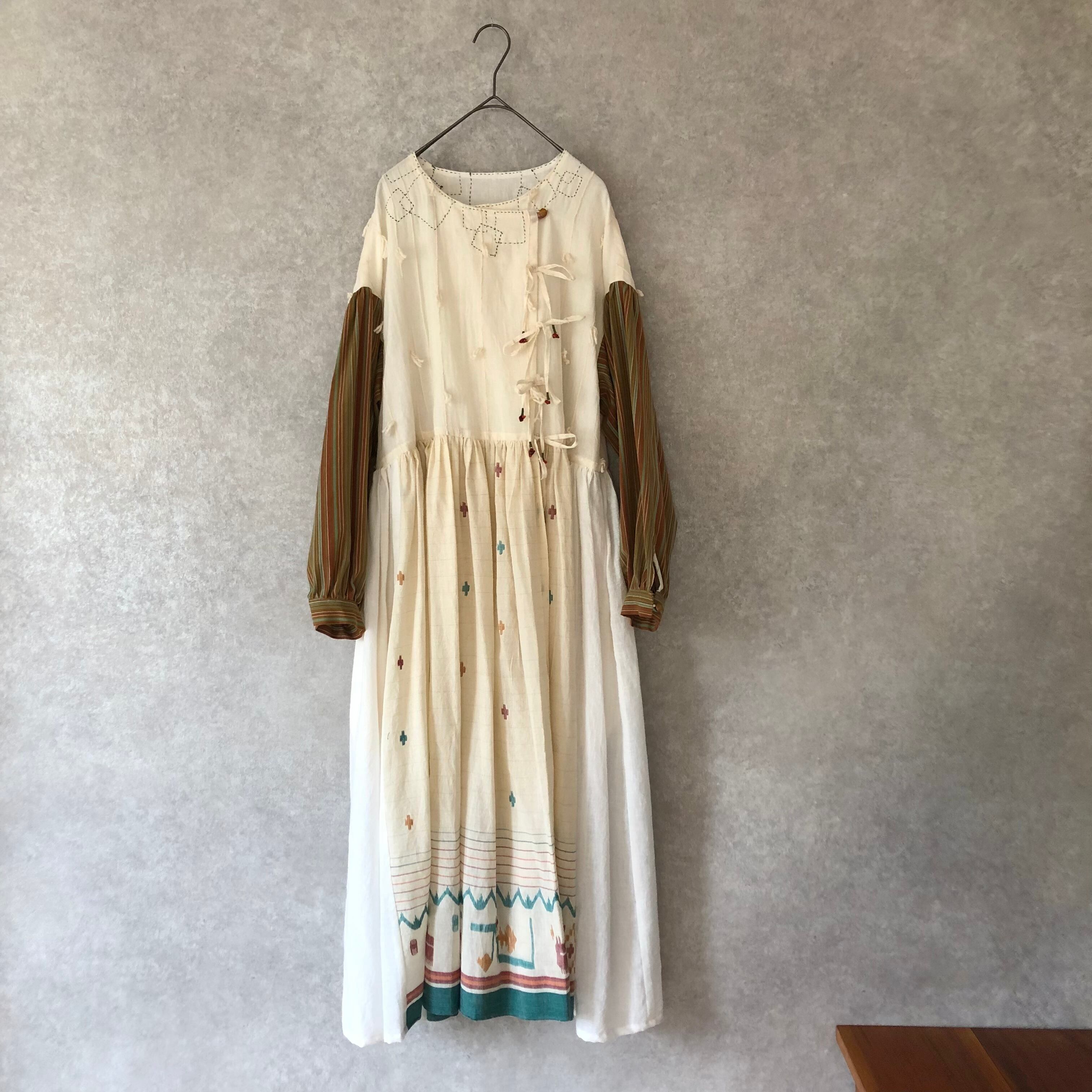 32.【袖丈47センチ】カディコットンリボンワンピース【カディ×マルチカラーしじら織】