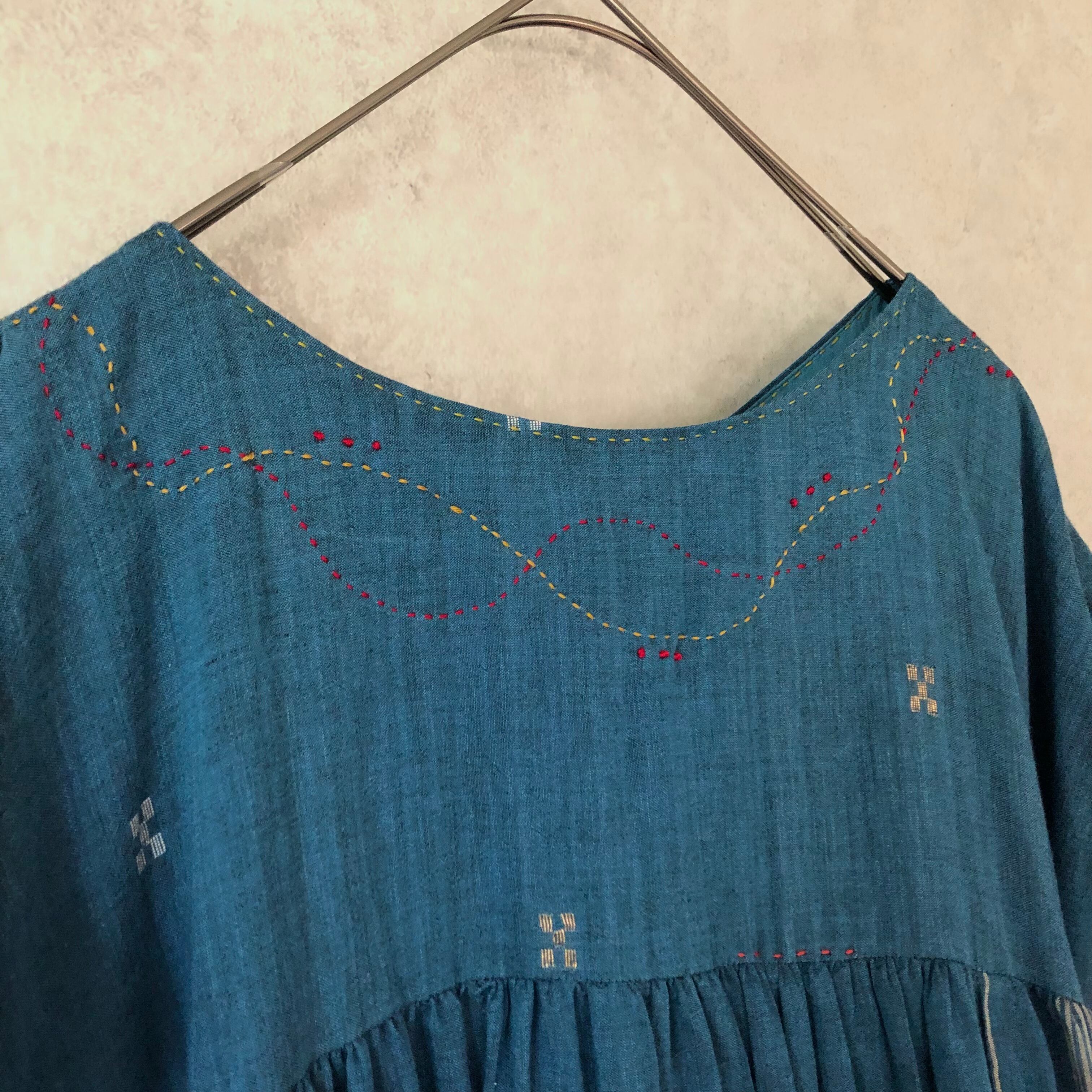 襟ぐりにさらにハンドステッチ(手縫いの飾りのステッチ)を追加しました!