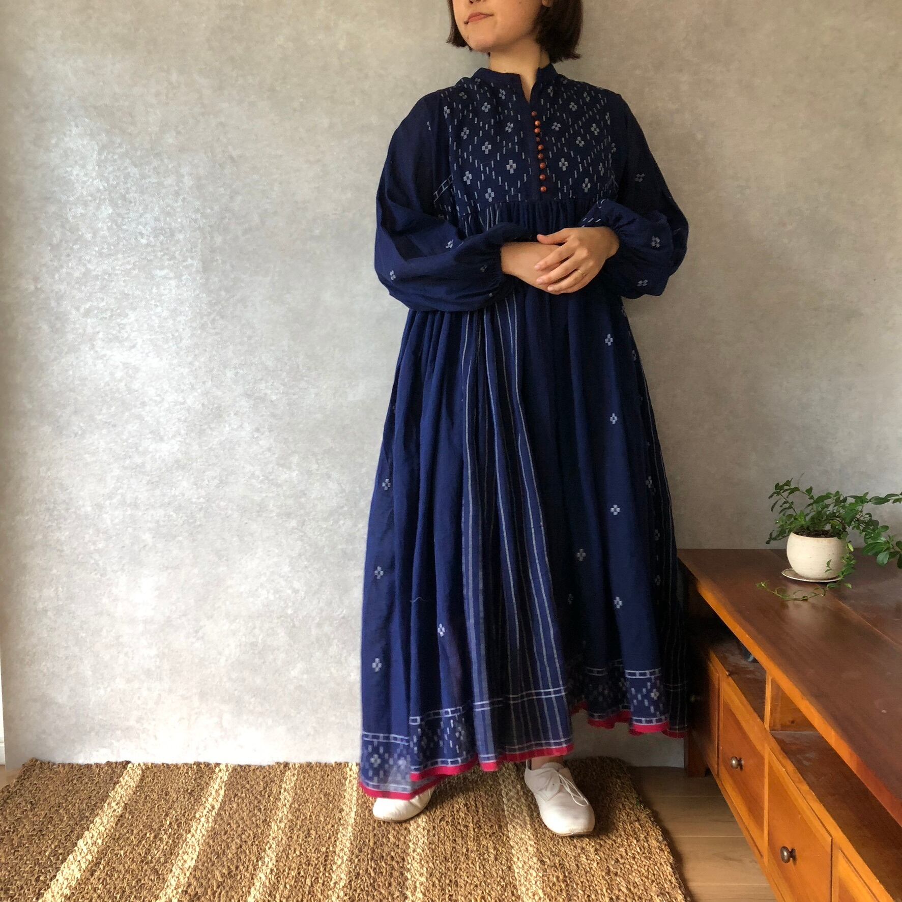 【ネイビーダイヤ】ボタンワンピース 丈120センチ ステッチ色 赤 送料無料