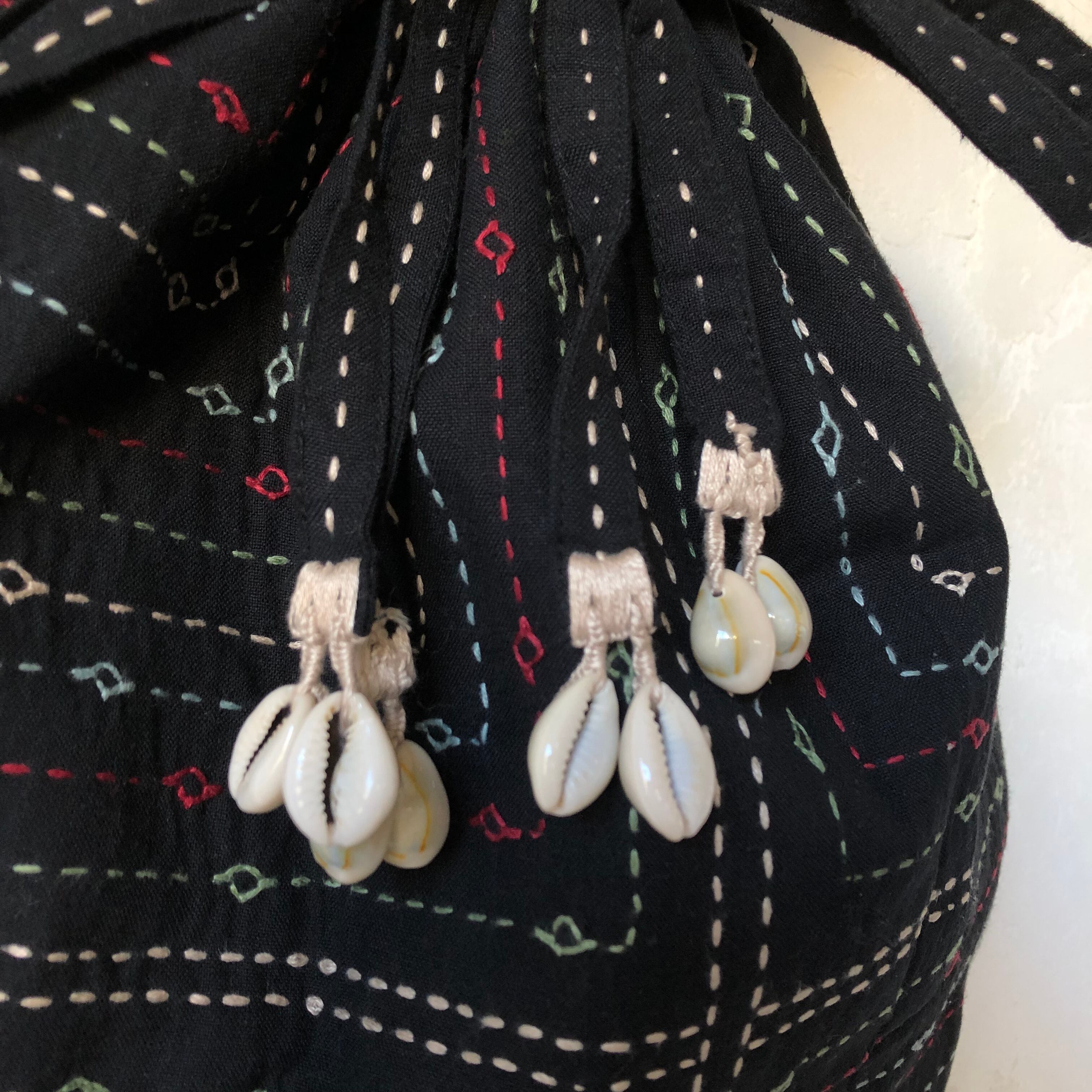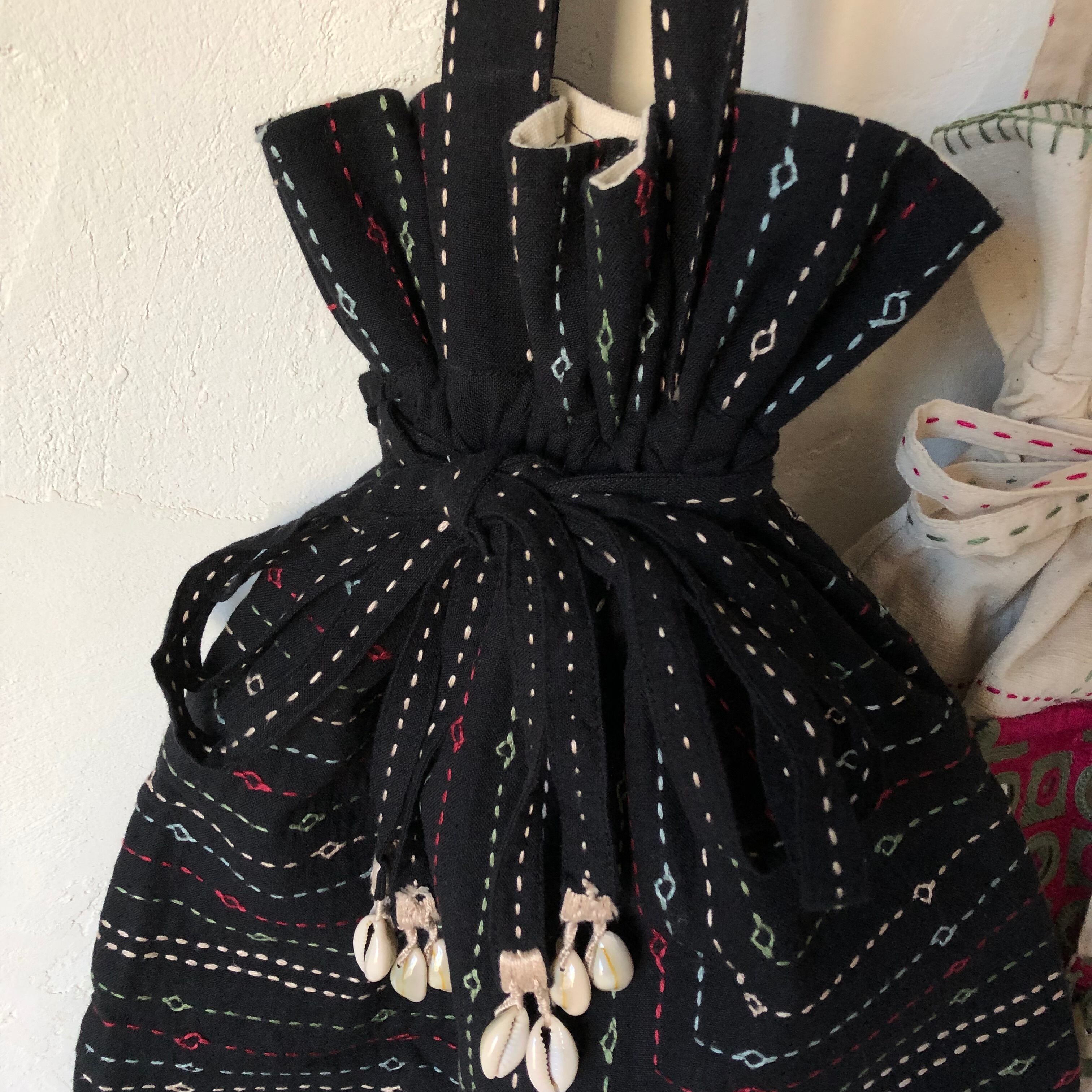ラバリ族の女性たちの手によって一点一点作られた巾着バッグです。