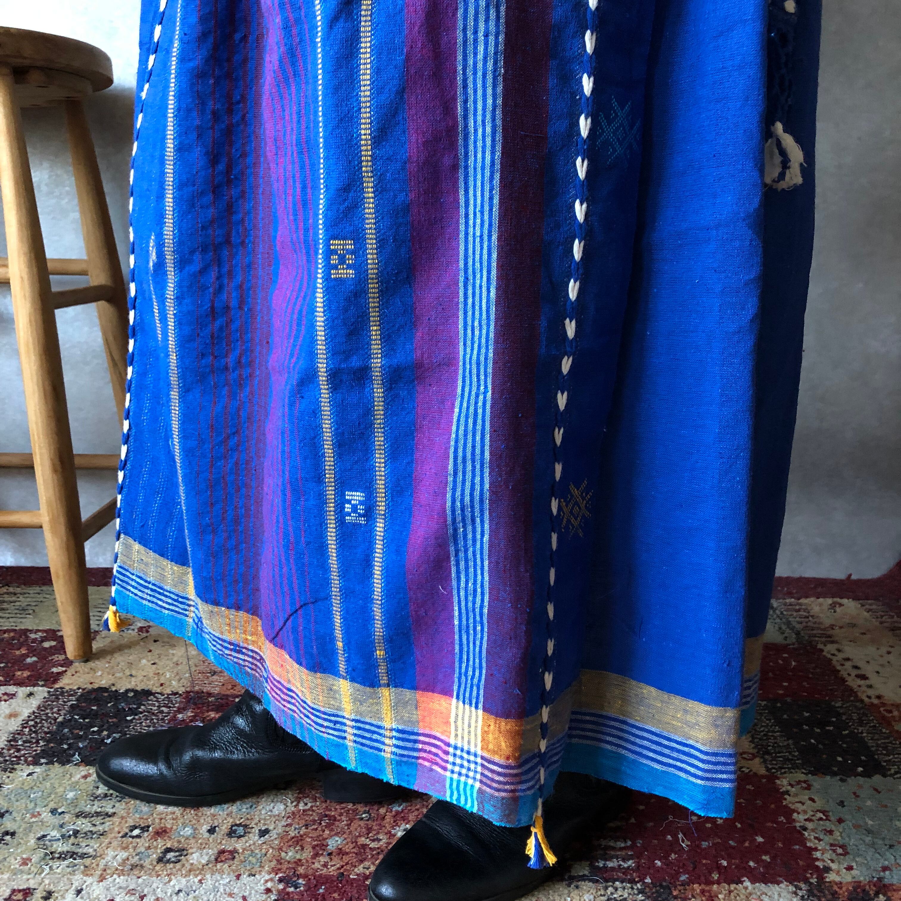 【カラフルブルー・フリンジなし】カラコットンサリーの巻きスカート