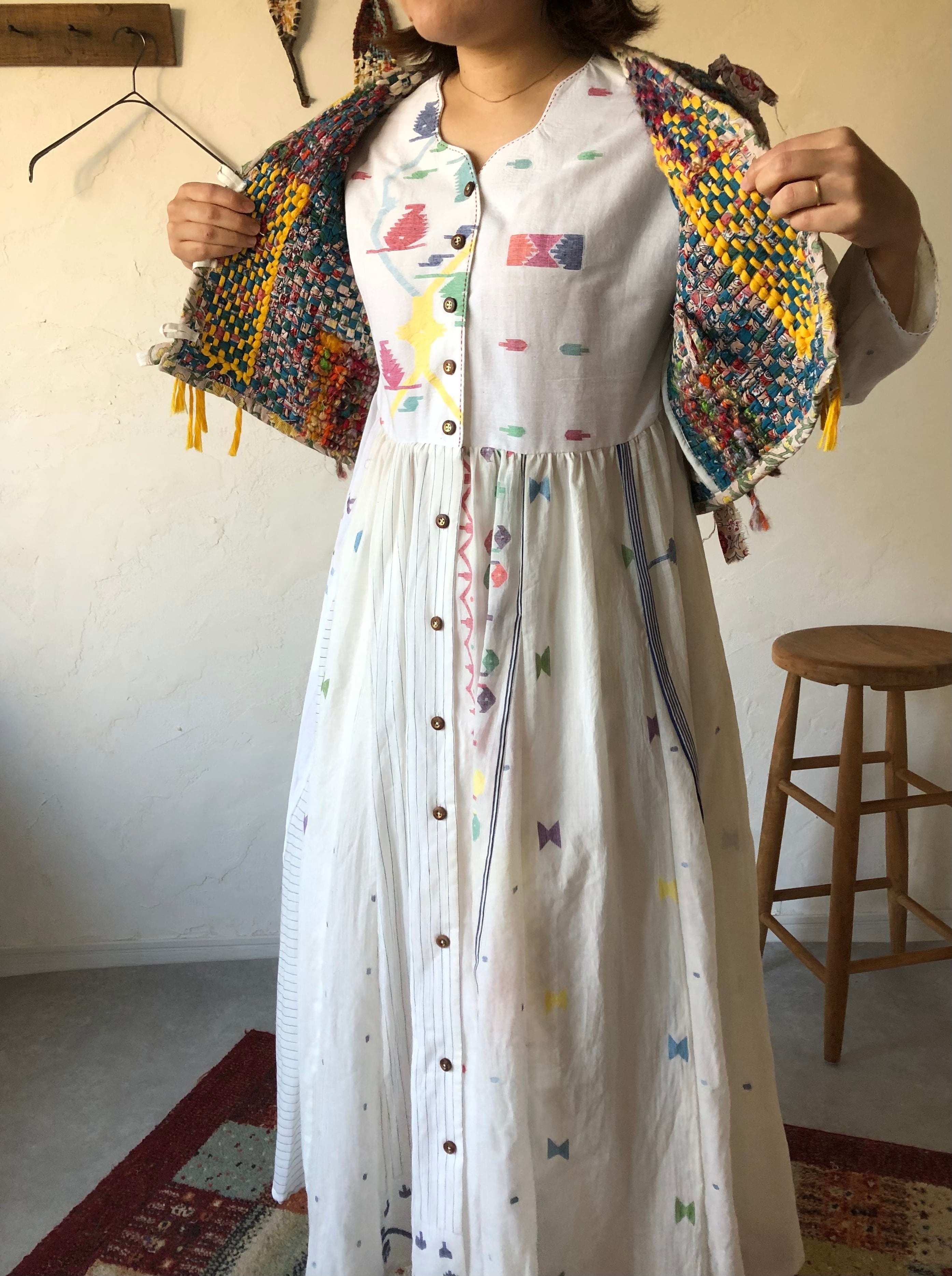 インドの職人さんのセンスが光る一点もののベスト。お願いしても同じものは作れませんのでビビッときた方、ぜひどうぞ。
