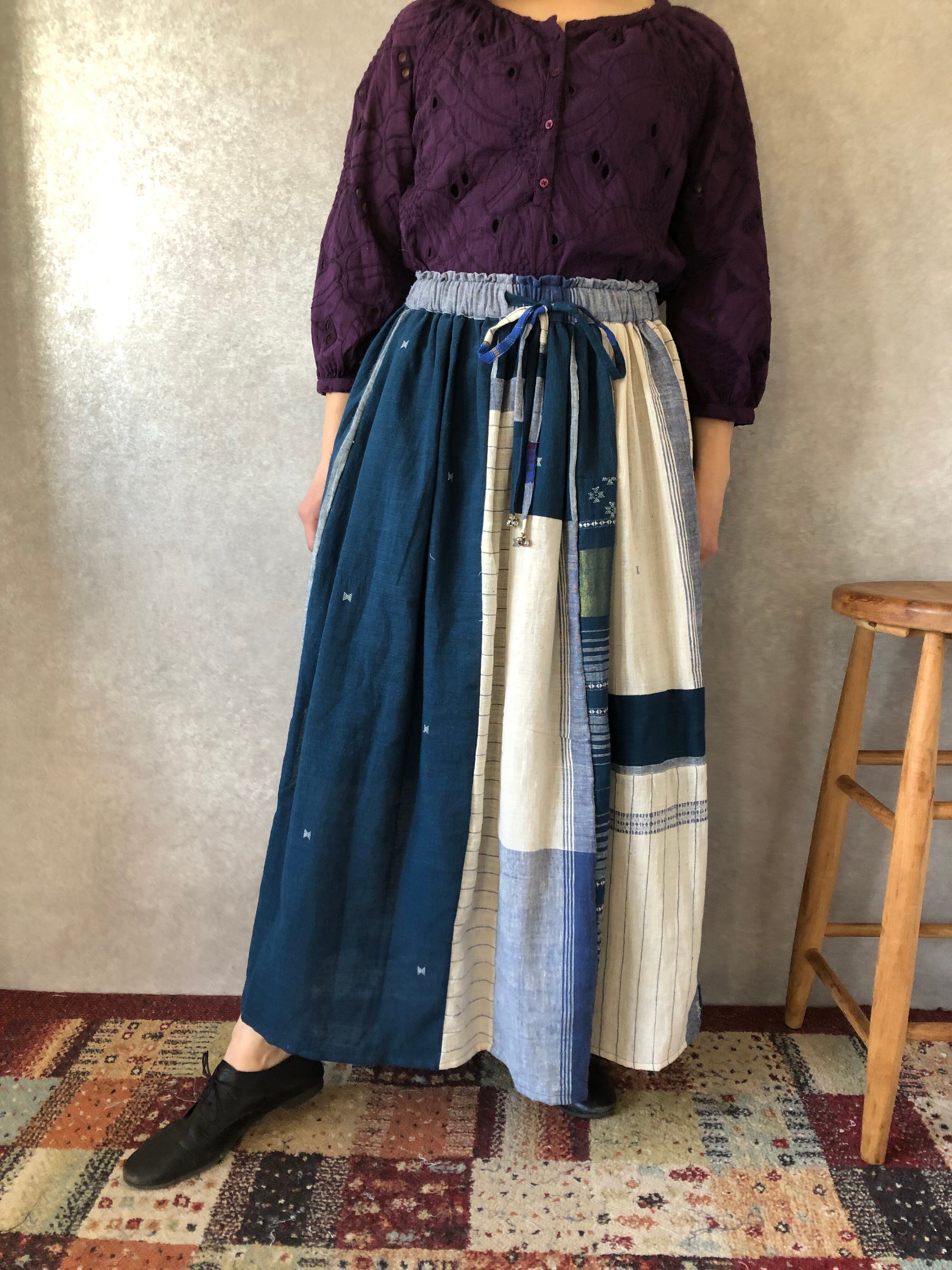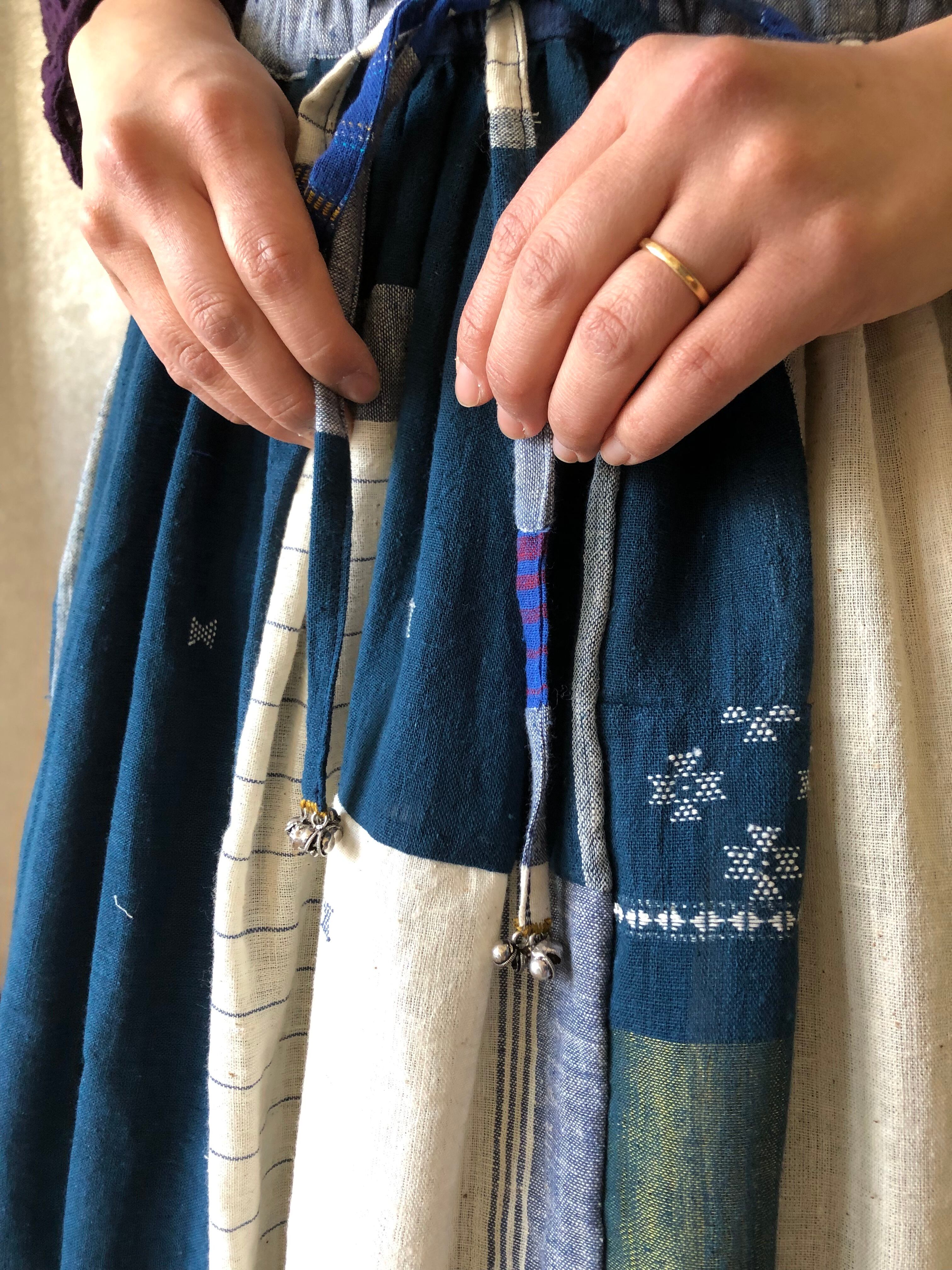 スカート同様にハギレを縫い合わせて作られていて